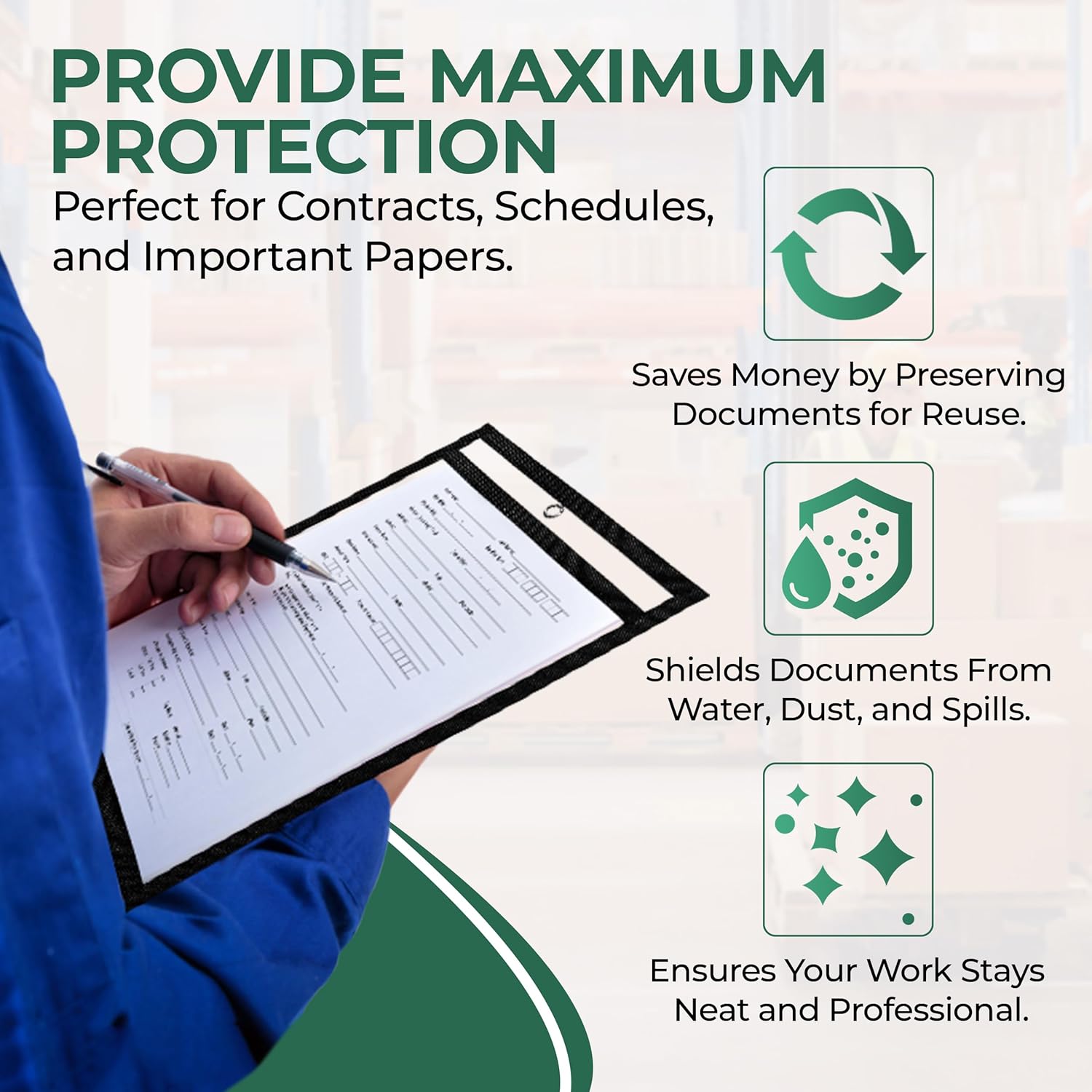 - Durable Job Ticket Holders: Made from high-quality PET plastic, these clear shop sleeves are built to last in greasy workshops, classrooms, and offices. Protects papers from dust, water, and wear in heavy-duty environments.