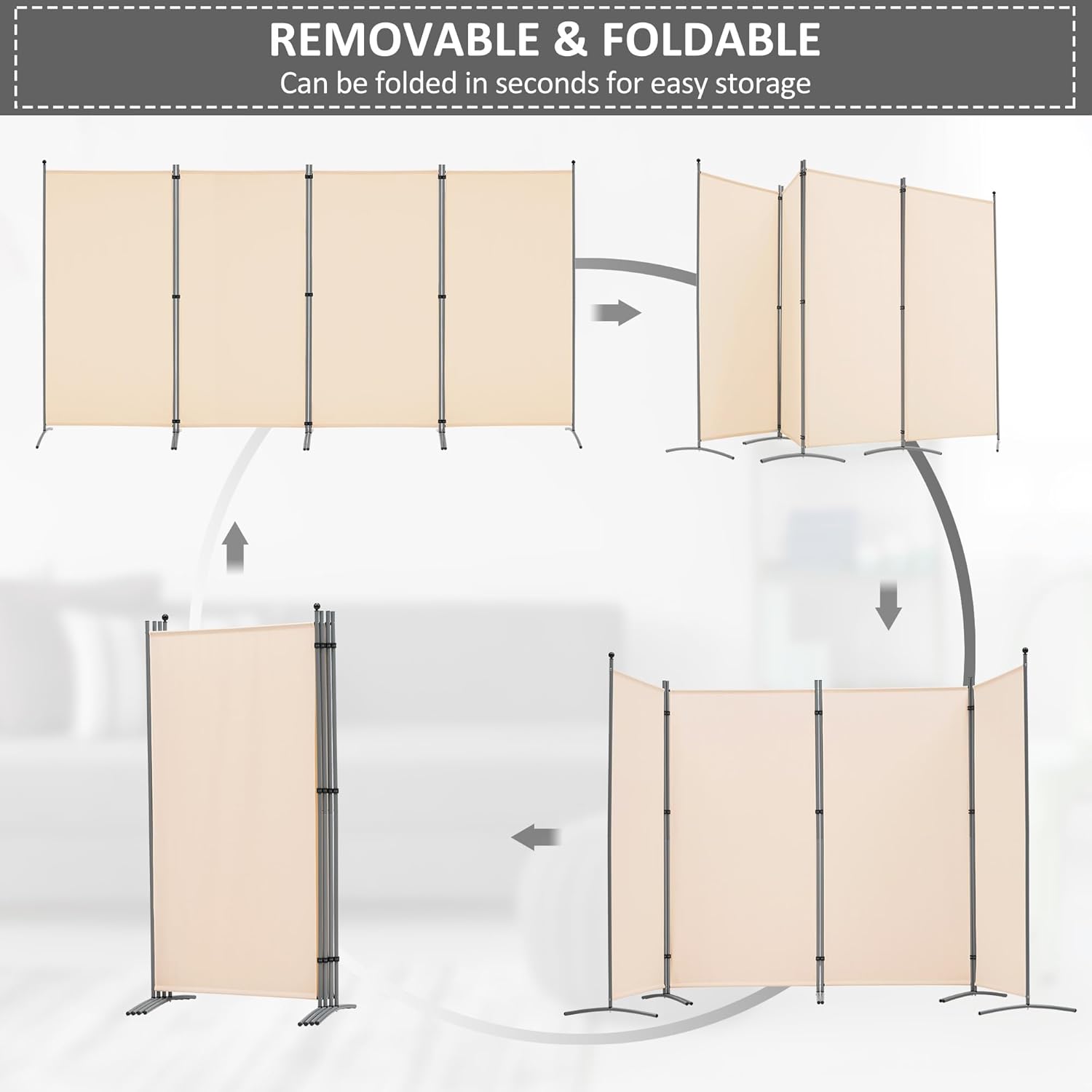 Spurgehom 4 Panel Room Divider Folding Privacy Screen, Freestanding Fabric Partition Portable Room Partition Wall Dividers for Home Office Room Restaurant, 136" W X 72" H (Beige)
