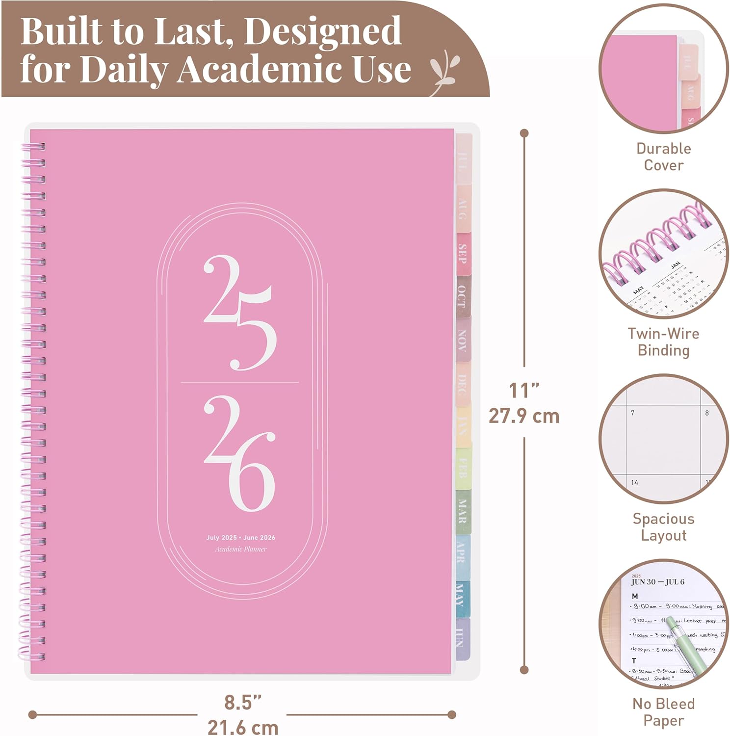 Rileys Academic Planner 2025-2026, Daily, Weekly & Monthly Planner, July 2025 - June 2026, Student Notes Pages, Twin-Wire Binding, Weekly Agenda for School & Work (8.5 x 11-Inches, Pink)