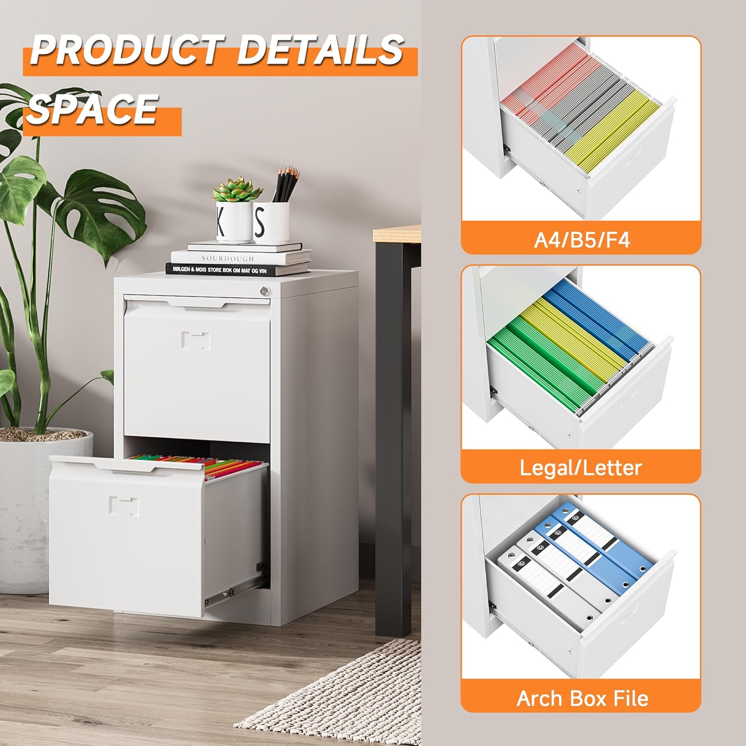 - 【Sturdy and Durable】Metal file cabinet drawers crafted from steel material, designed to be durable and suitable for all your storage needs. With a powder coating process that bonds and bakes the protective coating to the bare metal, the 2 drawer file cabinet with lock forms an effective barrier against corrosion.
