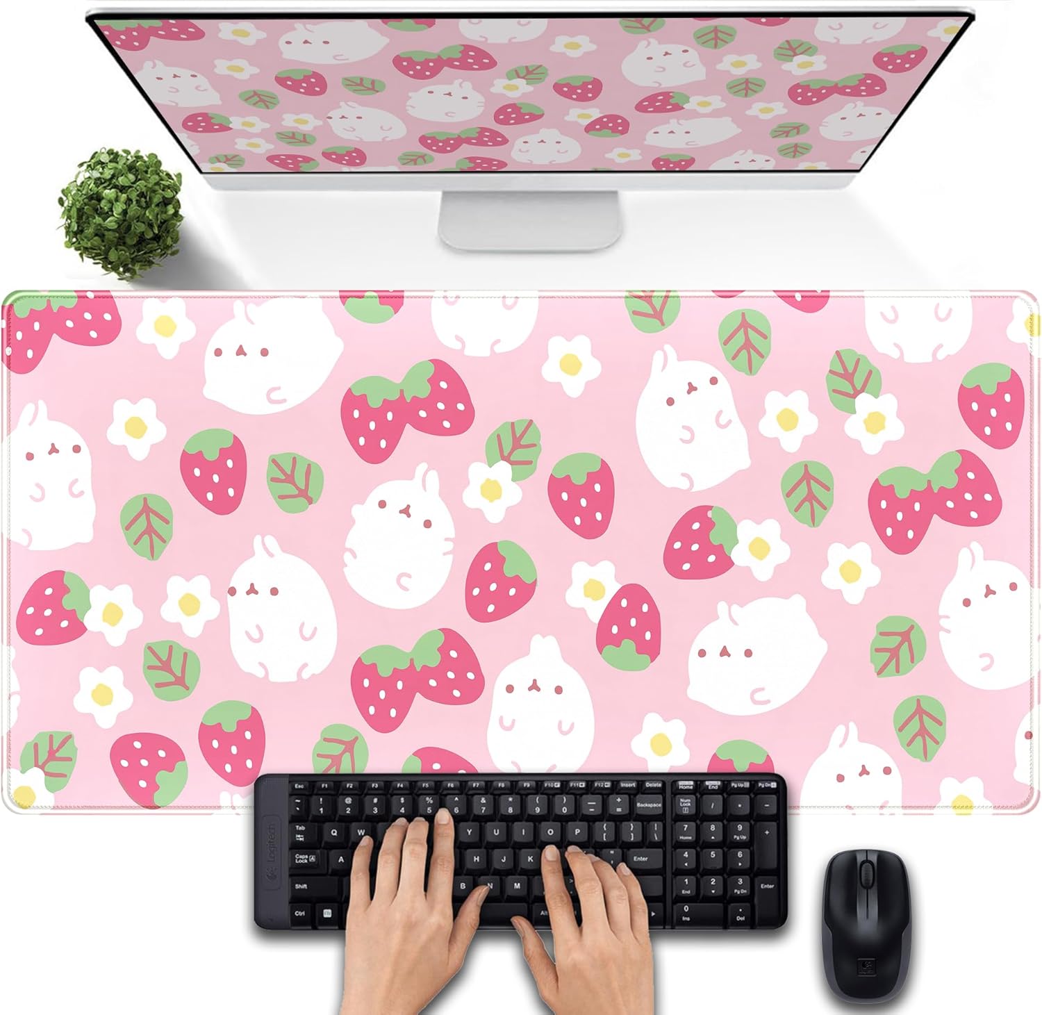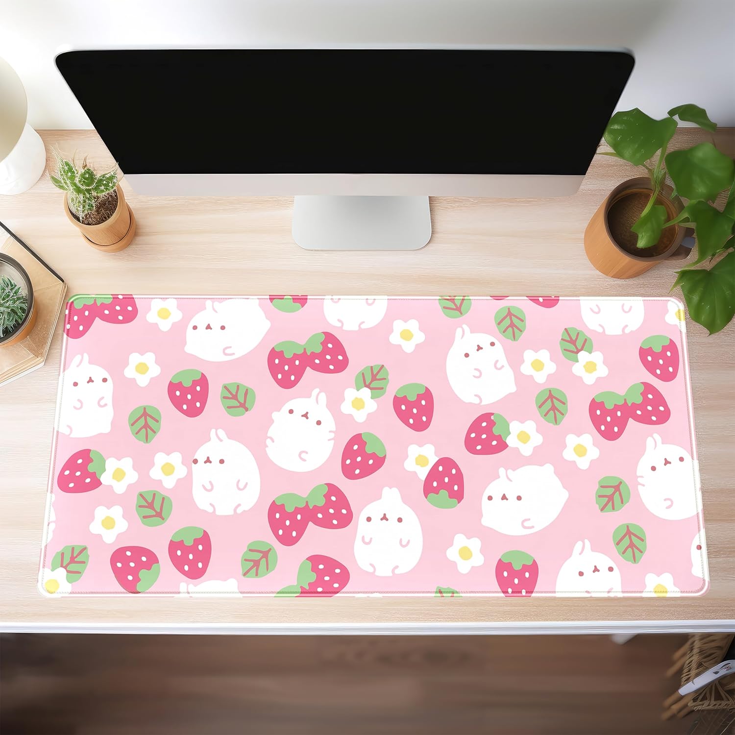 Pink Kawaii Desk Mat, Strawberry Field Desk Pad Large, Extended Mouse Pad Cute, XXL Laptop Computer Keyboard Mat Desktop Mouse Mat, Gaming Computer Pad Women Desk Decor Accessories 31.5"x15.75"