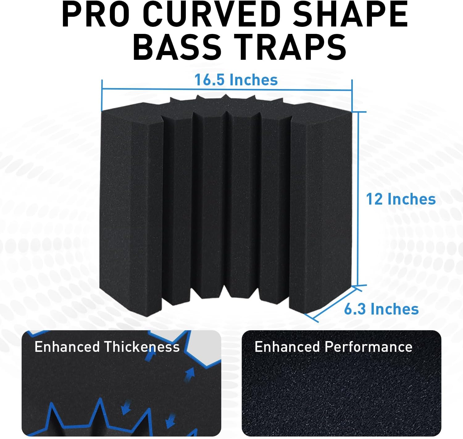 4 Pack Curved Bass Traps Corner Acoustic Foam, Large Size 16.5" X 6.3" X 12" Sound Absorbing Corner Bass Traps for Studio and Home Theater Low Frequency