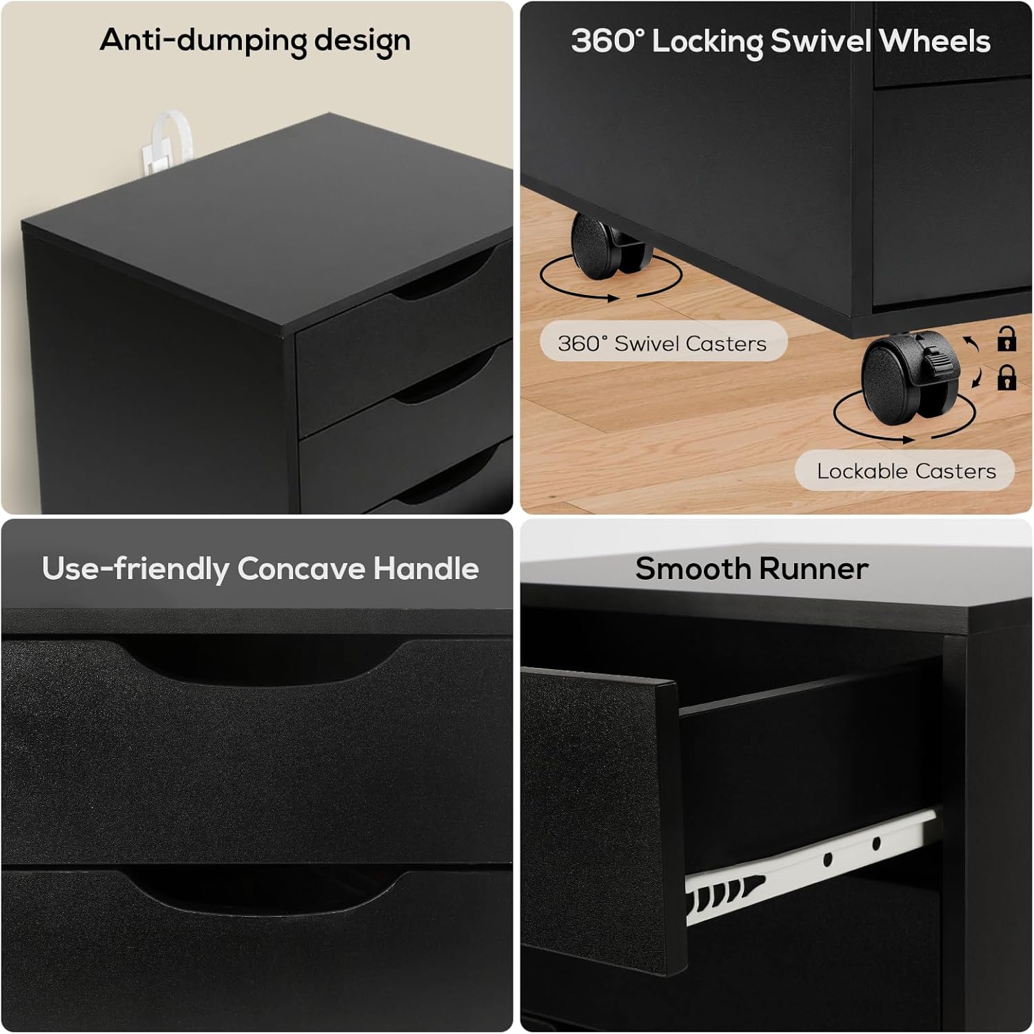 TUSY 5-Drawer Storage Cabinet, File Organizer with Caster Wheels, Chest of Drawers, Mobile File Cabinets, File Cabinets for Home Office, Under Desk Cabinet, Organization and Storage for Office, Black