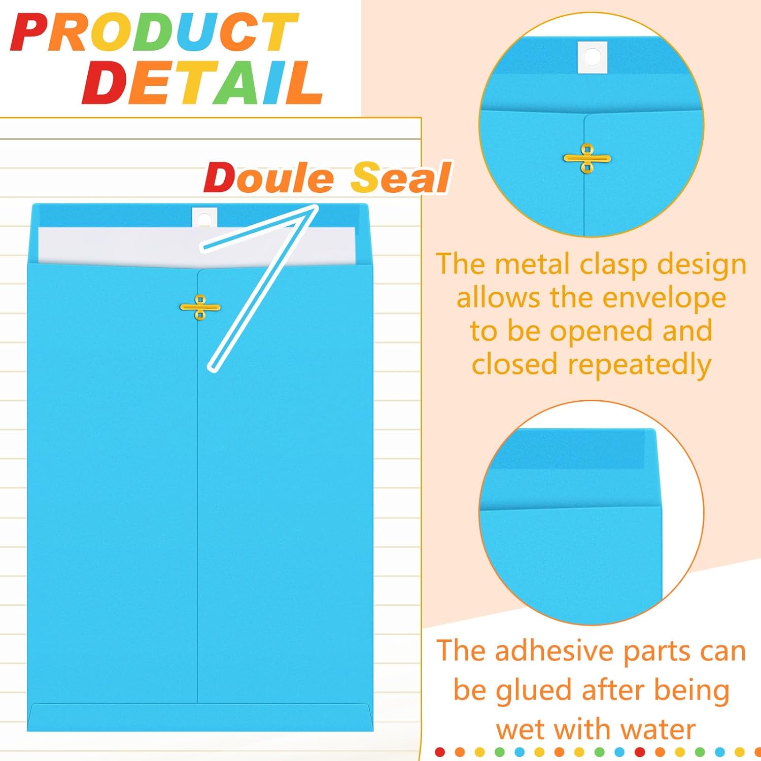 - Practical Sealing Mechanism: the metal clasps together with moisture activated gluing provide a secure grip and make the envelope easy to open and close repeatedly without damaging the content inside; The sealing mechanism ensures your documents stay safe and protected during handling