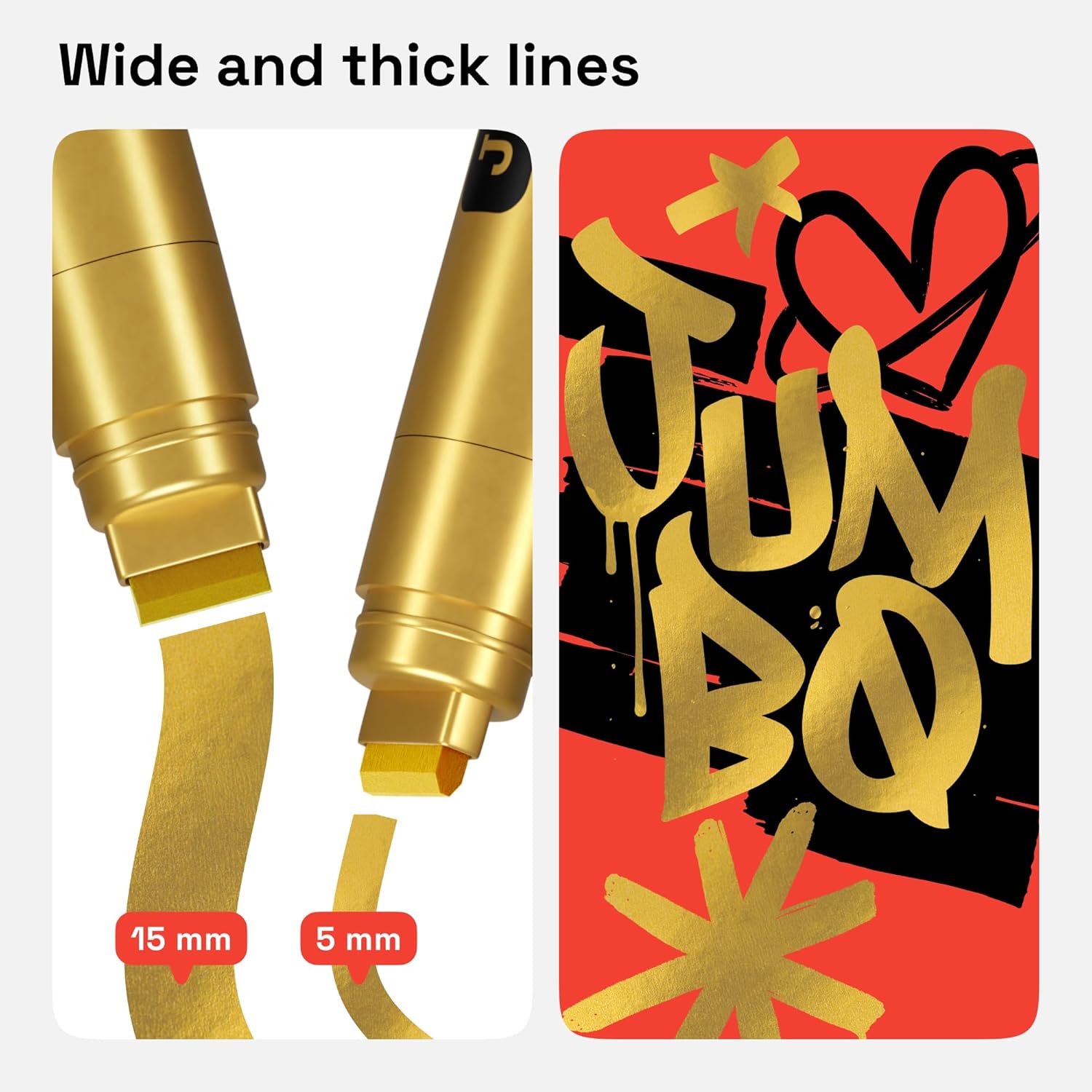 ARTISTRO 2 Gold Acrylic Paint Markers - 15mm Jumbo-Tip Paint Pens - Perfect for Crafting, Art Projects, & More