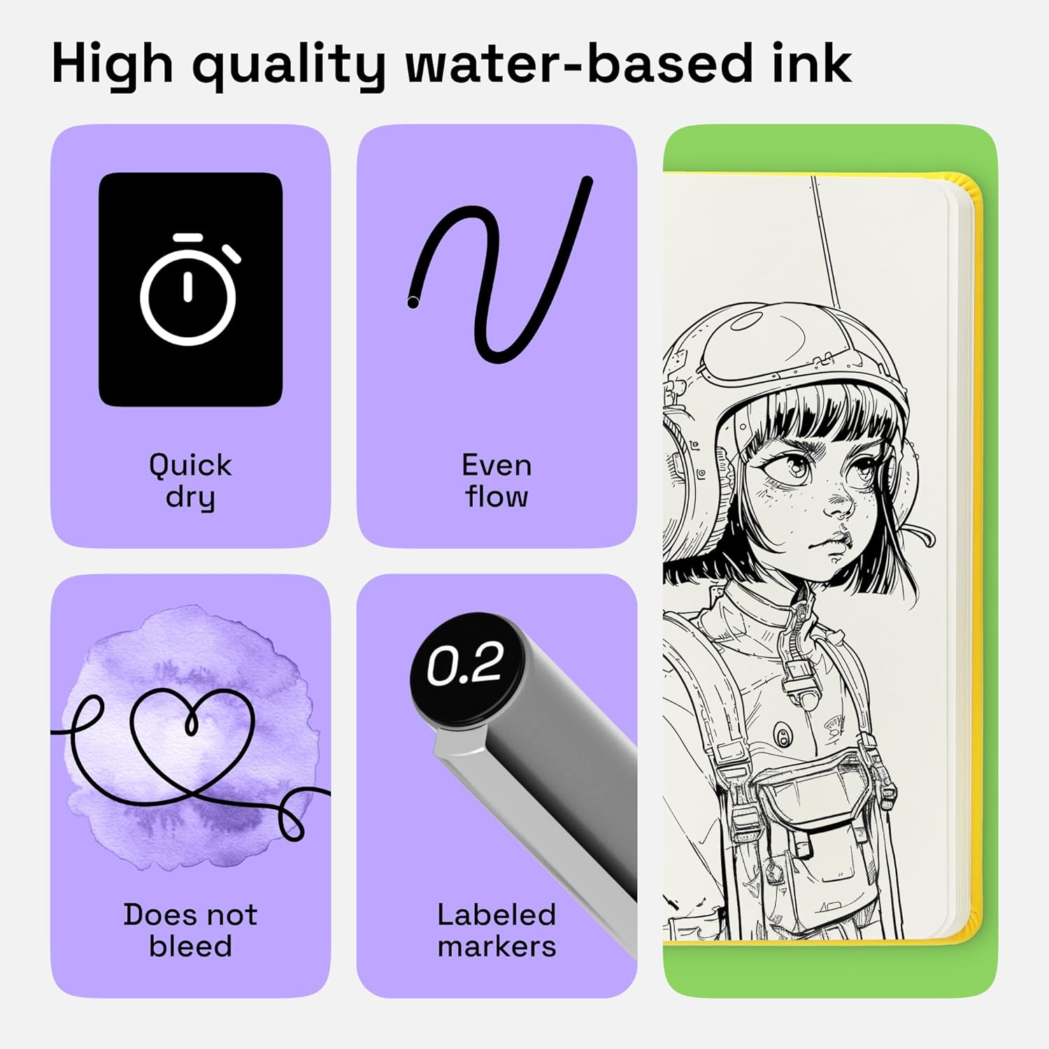 - Versatile Micro Pens: The set includes 2 black drawing pens. Each art pen has a nib size of 0.2mm. Ideal for artists and beginners, these drawing pens for artists will cover all your drawing, writing, and sketching needs.