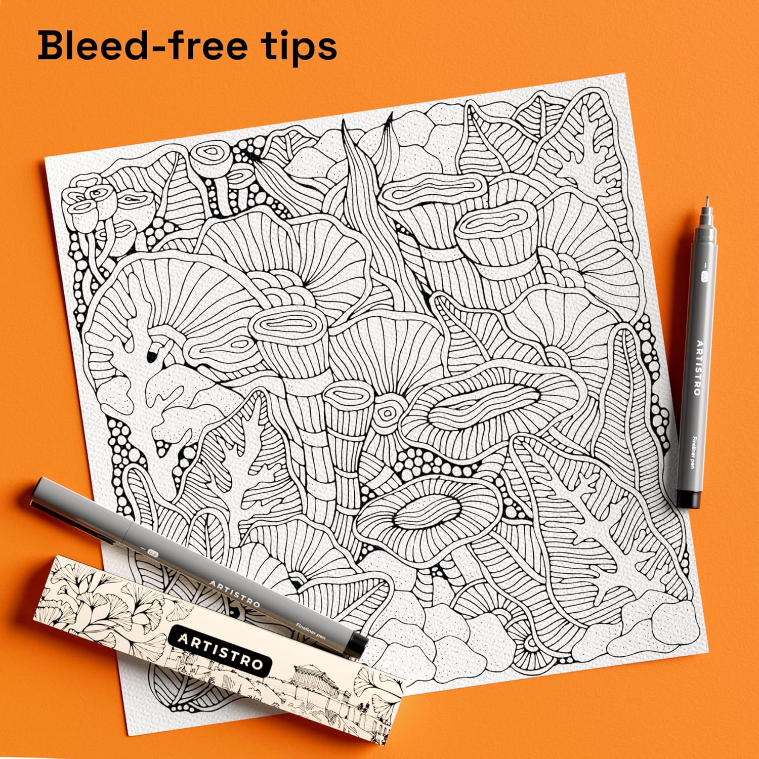 - Waterproof Pigment Ink: No bleed, no smear, waterproof archival ink, and fade-resistant. Quick drying, acid-free, non-toxic, odorless. Durable stainless steel micro tips and quality pigment inks make for non-toxic, waterproof, and quick-drying fine tip technical pens.