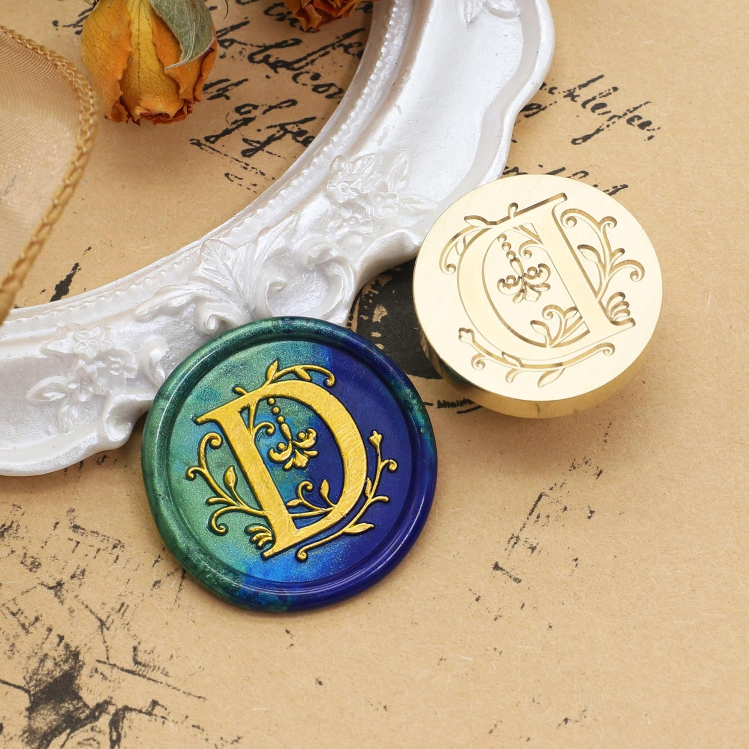 SWANGSA Initial Alphabet D Wax Seal Stamp Kit, Classic Retro Letter Sealing Stamp with 200pcs Sealing Wax Beads Kit for Wedding Invitations Cards Envelopes (D)