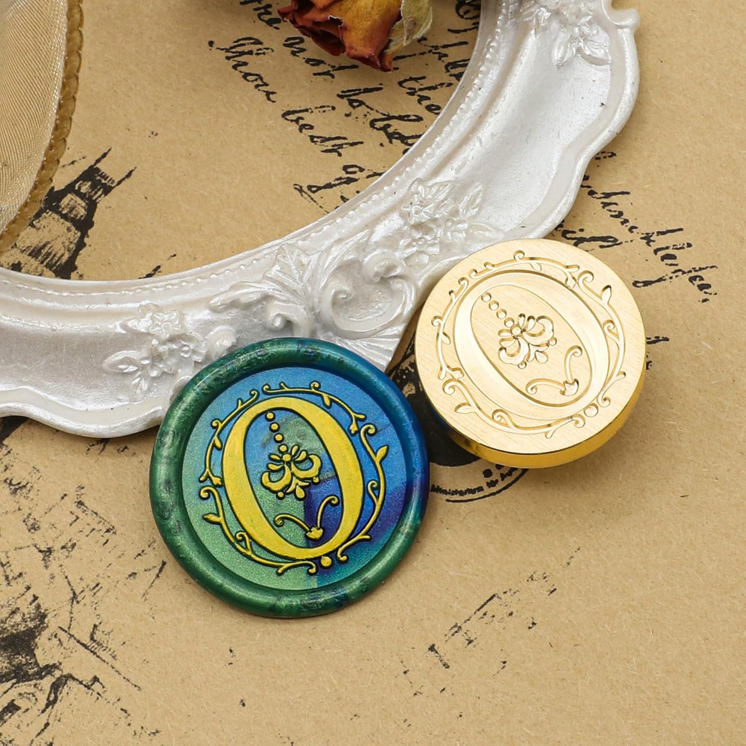 SWANGSA Initial Alphabet O Wax Seal Stamp Kit, Classic Retro Letter Sealing Stamp with 200pcs Sealing Wax Beads Kit for Wedding Invitations Cards Envelopes (O)