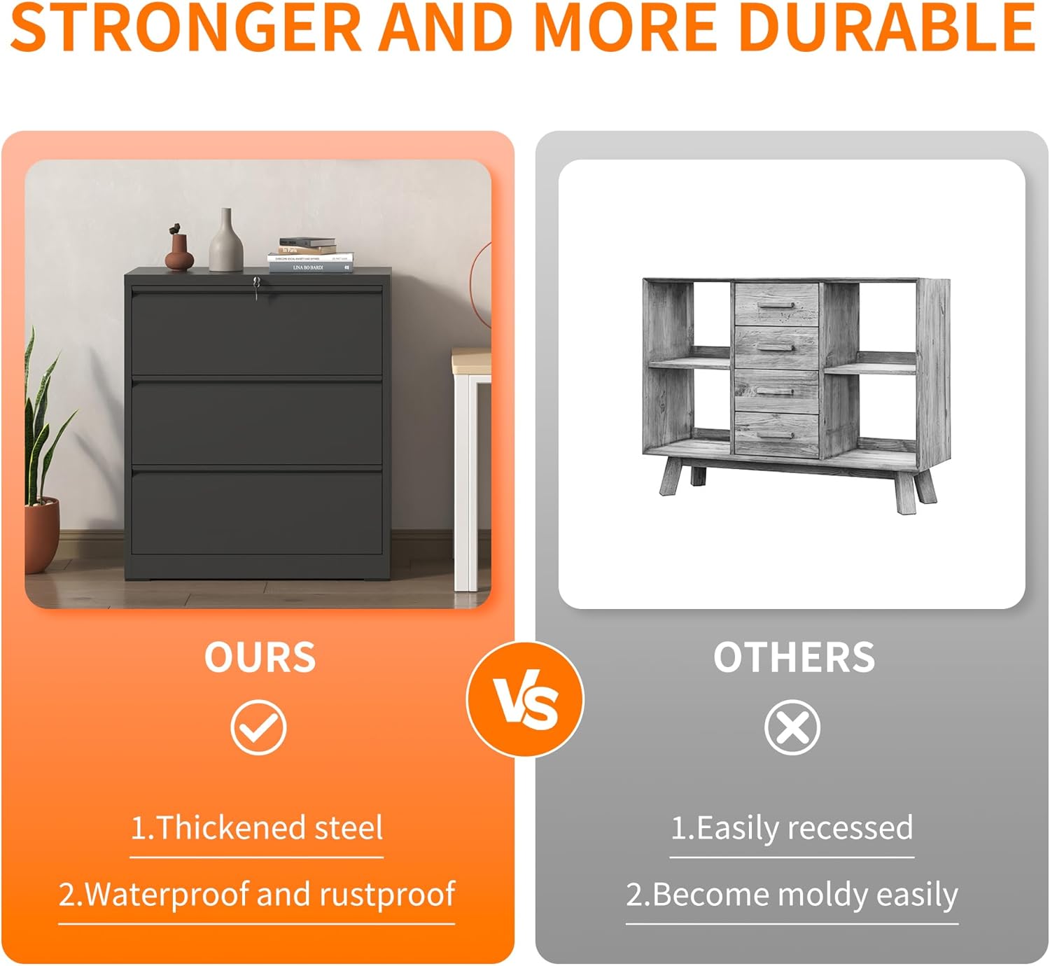Locking Filing Cabinet with 3 Drawer Heavy Duty Large Metal File Cabinet Home Office Black Lateral File Cabinets Wide Steel Cabinet for Legal/Letter Size File,Assembly Required