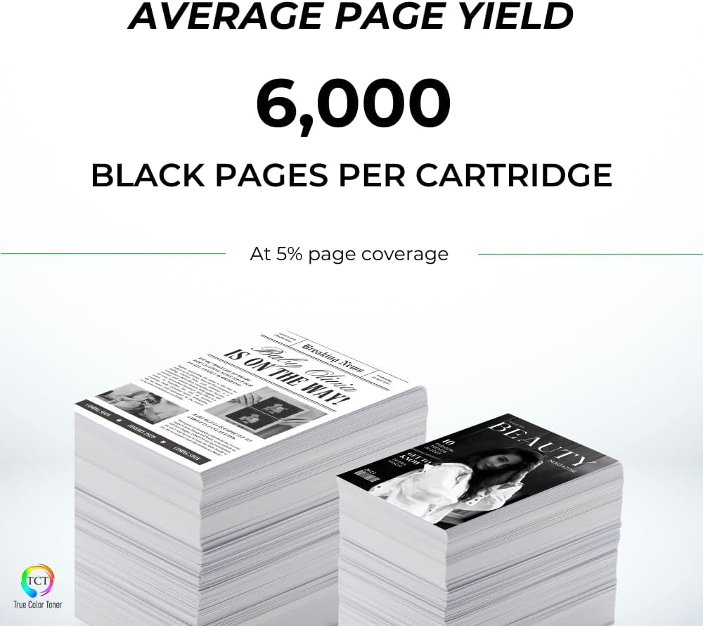 - Page Yield: Up to 6000 pages at 5% coverage (Letter/A4) per cartridge.