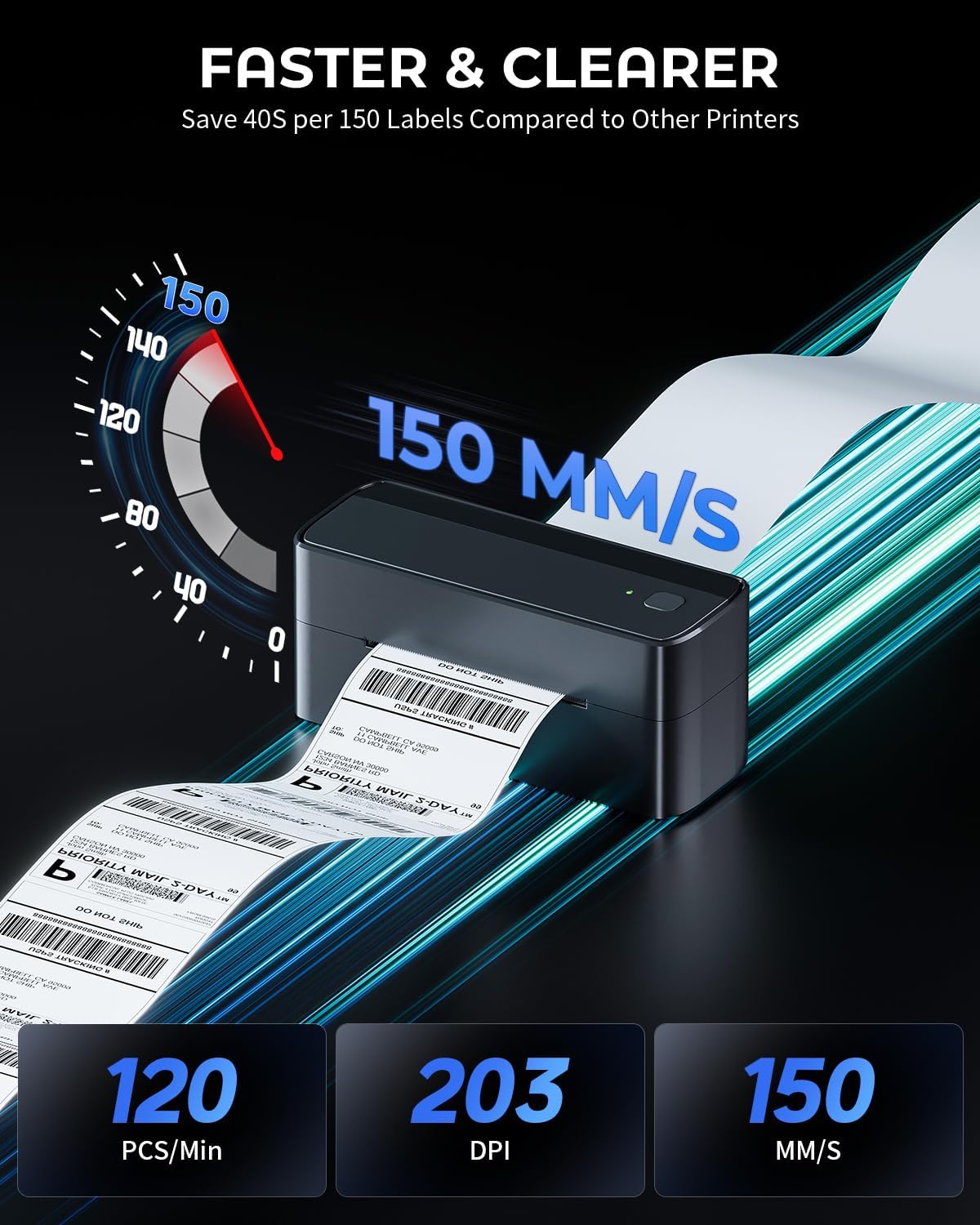 - 【 High-speed & High-quality Printing 】 Phomemo label printer has a printing speed of 150mm /s and can print up to 72Pcs 4x6 labels per minute. It also features a print resolution of 203 DPI, ensuring the clarity and accuracy of the labels. Phomemo thermal printers help you save precious time and money and enhance your productivity