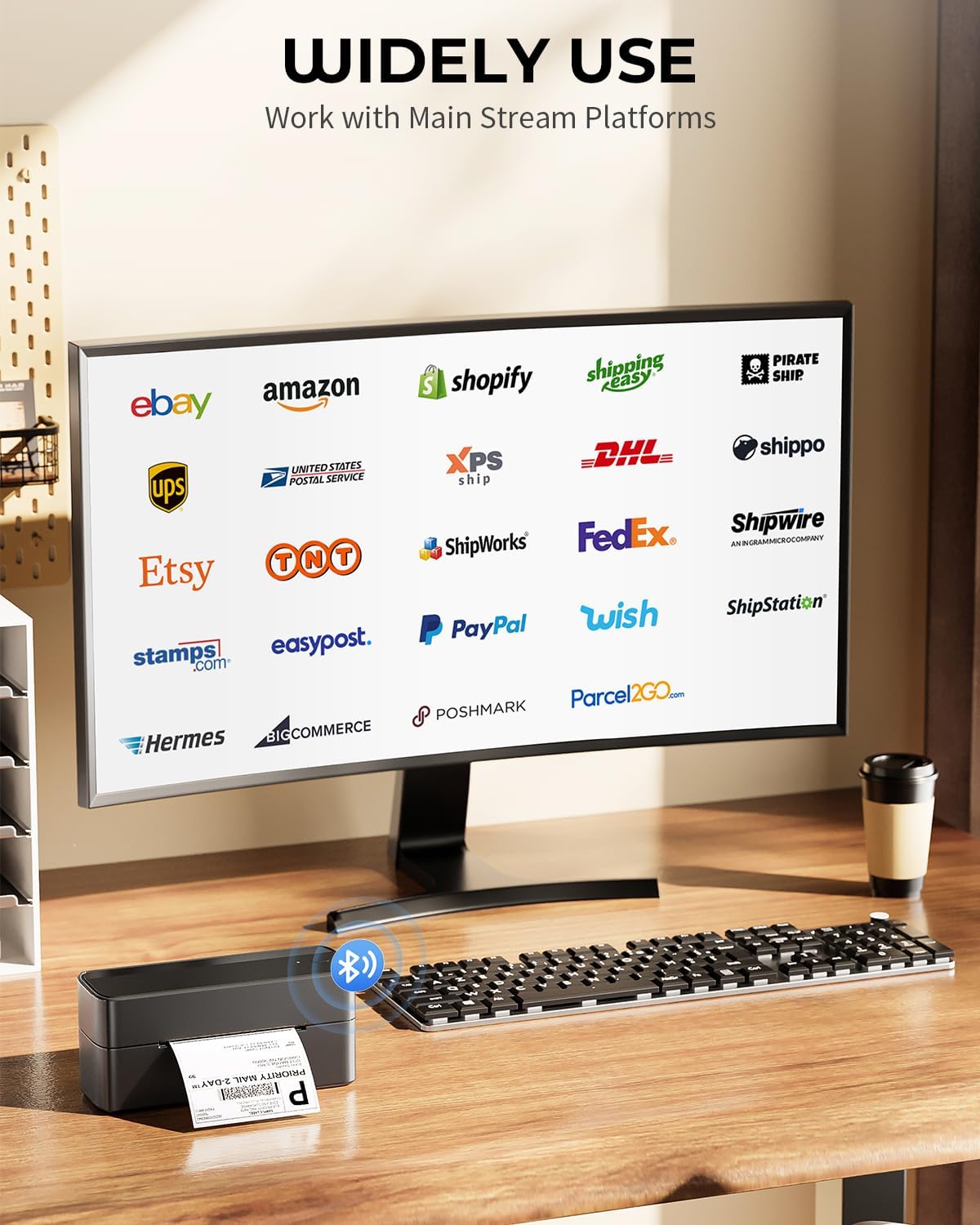 - 【 Wide Platform Compatibility 】241BT usps label printer is compatible with major transportation and sales platforms such as usps, UPS, eBay, FedEx, Amazon, Shopify, Etsy, and PayPal. The ideal label printer for small business transportation - easily edit and print text, barcodes, QR codes, tables, etc. online, and can also directly import WORD/TXT/PDF files for printing. Note: The printer only supports black-and-white printing. For color labels, please purchase compatible thermal color label paper separately