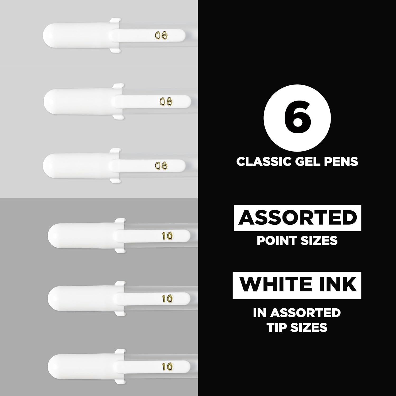 SAKURA Gelly Roll Gel Pens - Medium & Bold Tip Ink Pens for Journaling, Art, or Drawing - Classic White Ink - 08/10 Assorted Tip Sizes - 6 Pack