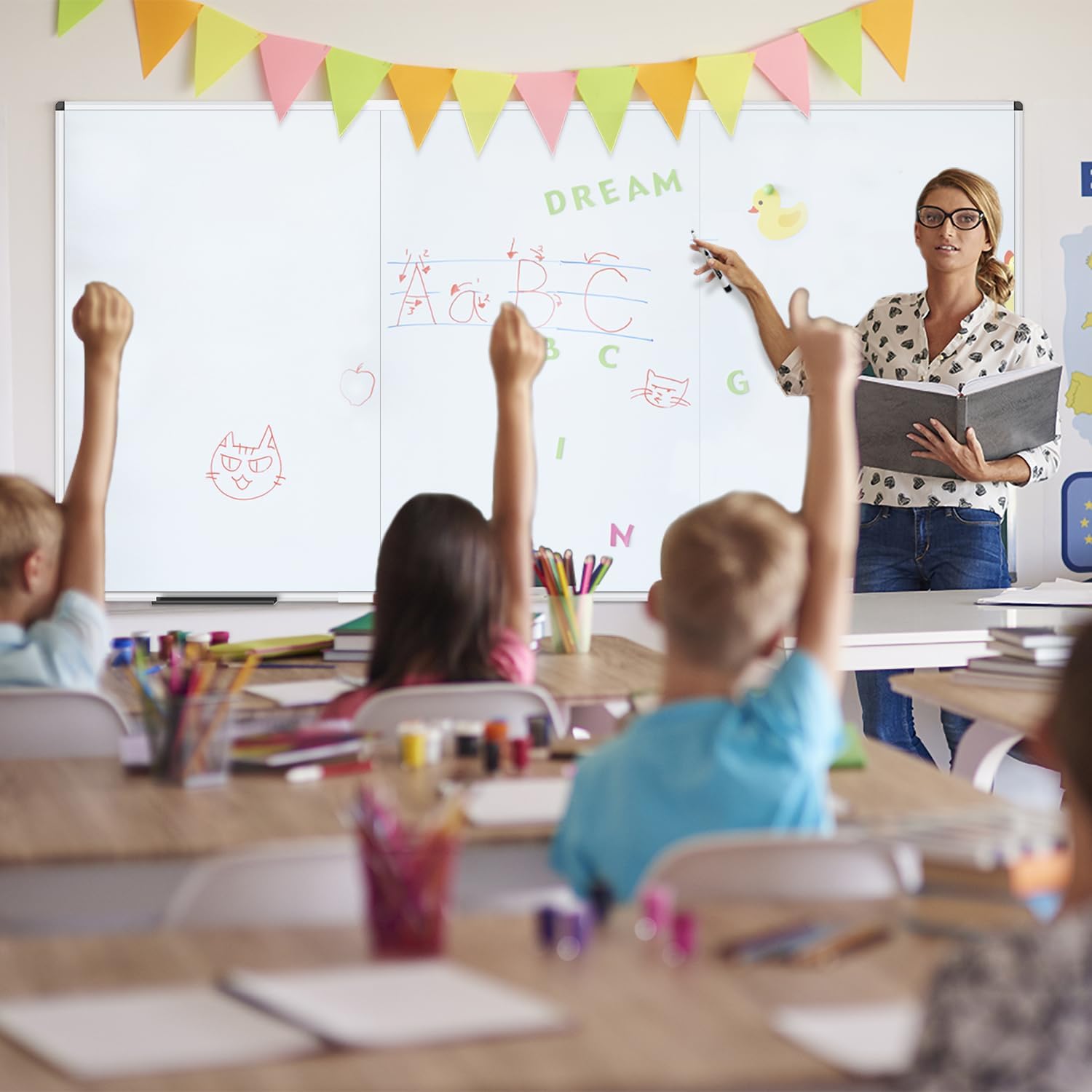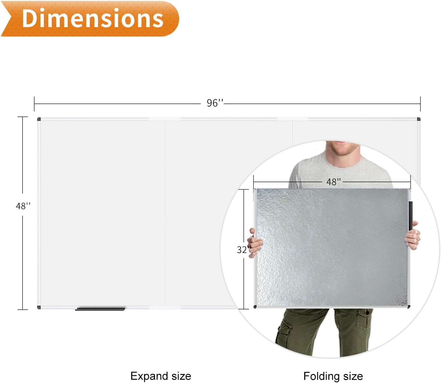 - [High Quality Details] Smooth & durable magnetic writing surface, easily dry wipe with all dry-erase markers. Folding design ensures that the whiteboard will not warp in transit. Anti-Scratch silver finished aluminium frame, ABS plastic corner with screw-fixing in corners, Detachable Marker Tray.