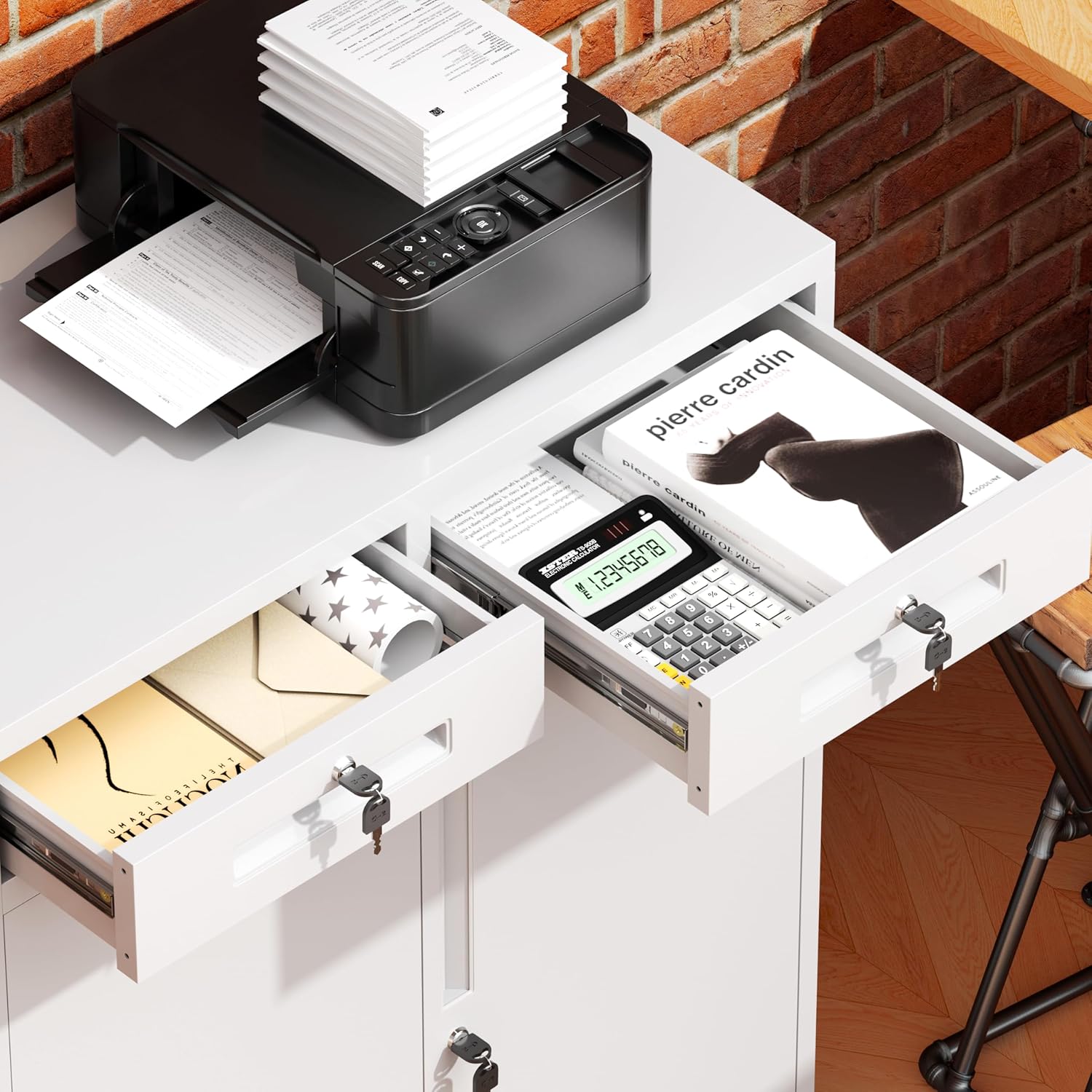 - [𝗨𝗣𝗚𝗥𝗔𝗗𝗘𝗗 𝗟𝗢𝗖𝗞𝗜𝗡𝗚 𝗦𝗬𝗦𝗧𝗘𝗠] -- Greenvelly metal storage cabinet adopts a new upgraded and safer three-point interlocking system. Multiple locked areas such as two drawers can store different tools or files. The lockable metal storage cabinet provides higher security for your important items and documents, making it perfect for use in offices, garages, and schools.
