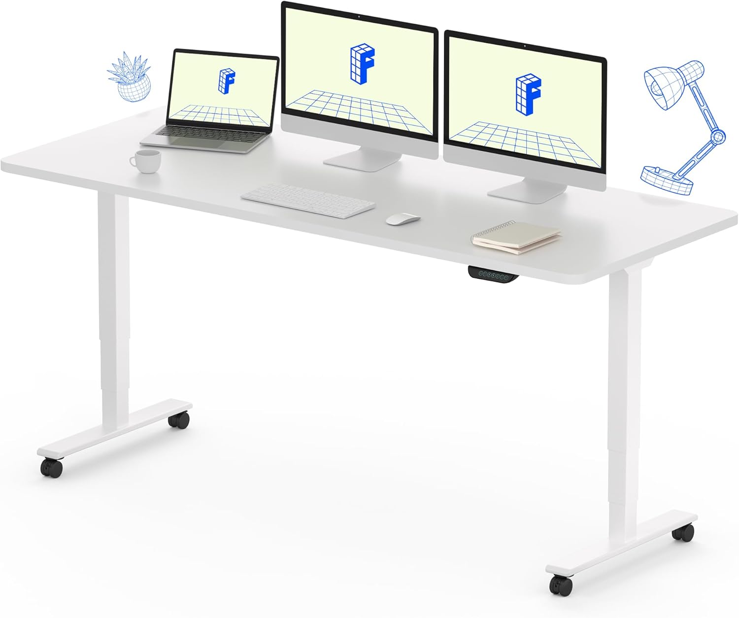 FLEXISPOT E6 MAX Dual Motor 3 Stages Standing Desk 60x24 Inch Whole-Piece Board Electric Height Adjustable Stand Up Desk 150KG Load Capacity(White Frame + White Desktop)