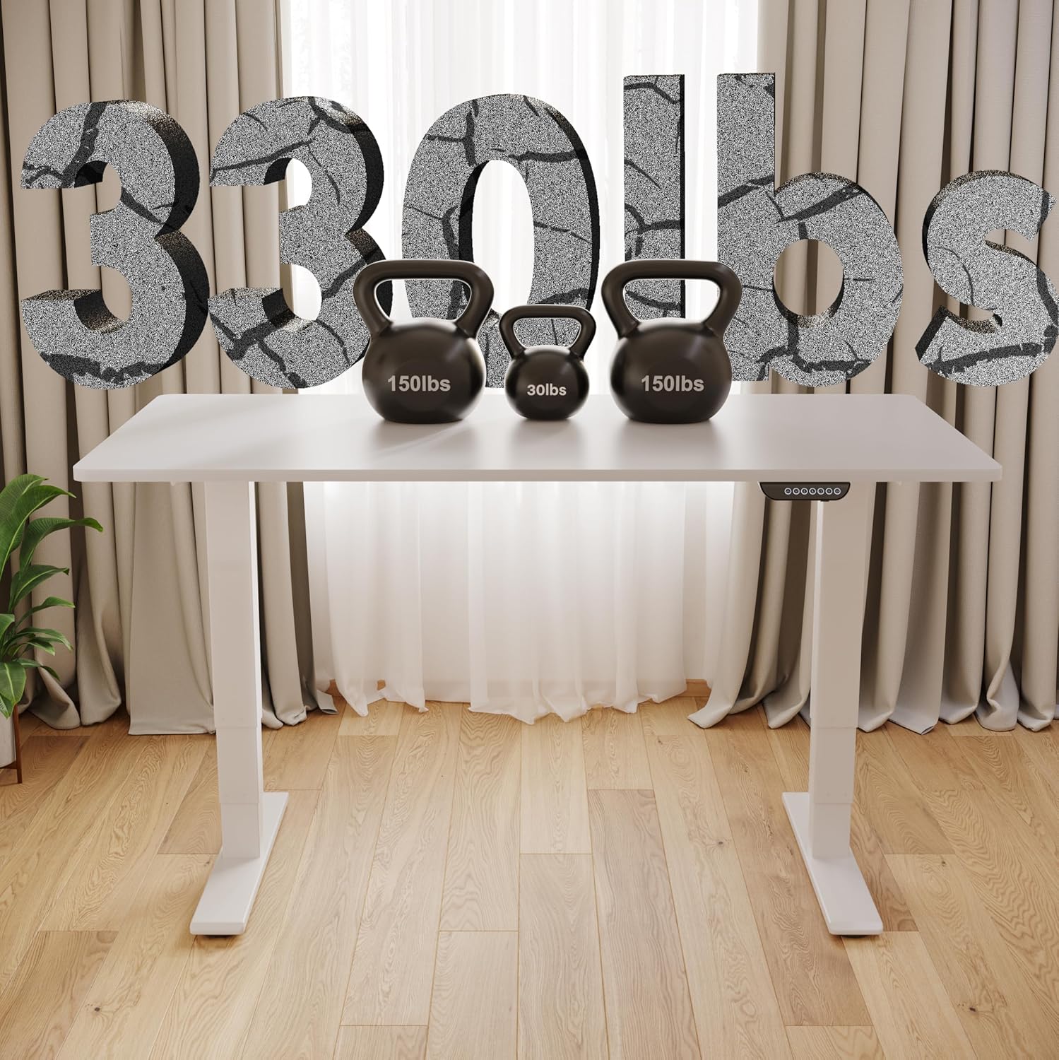 - 【QUIET DUAL MOTORS with 80% MORE LOADING CAPACITY】: Experience whisper-quiet adjustments with our dual motors, generating less than 50dB of sound while effortlessly lifting up to 330 lbs. Enjoy seamless transitions without disrupting your surroundings.