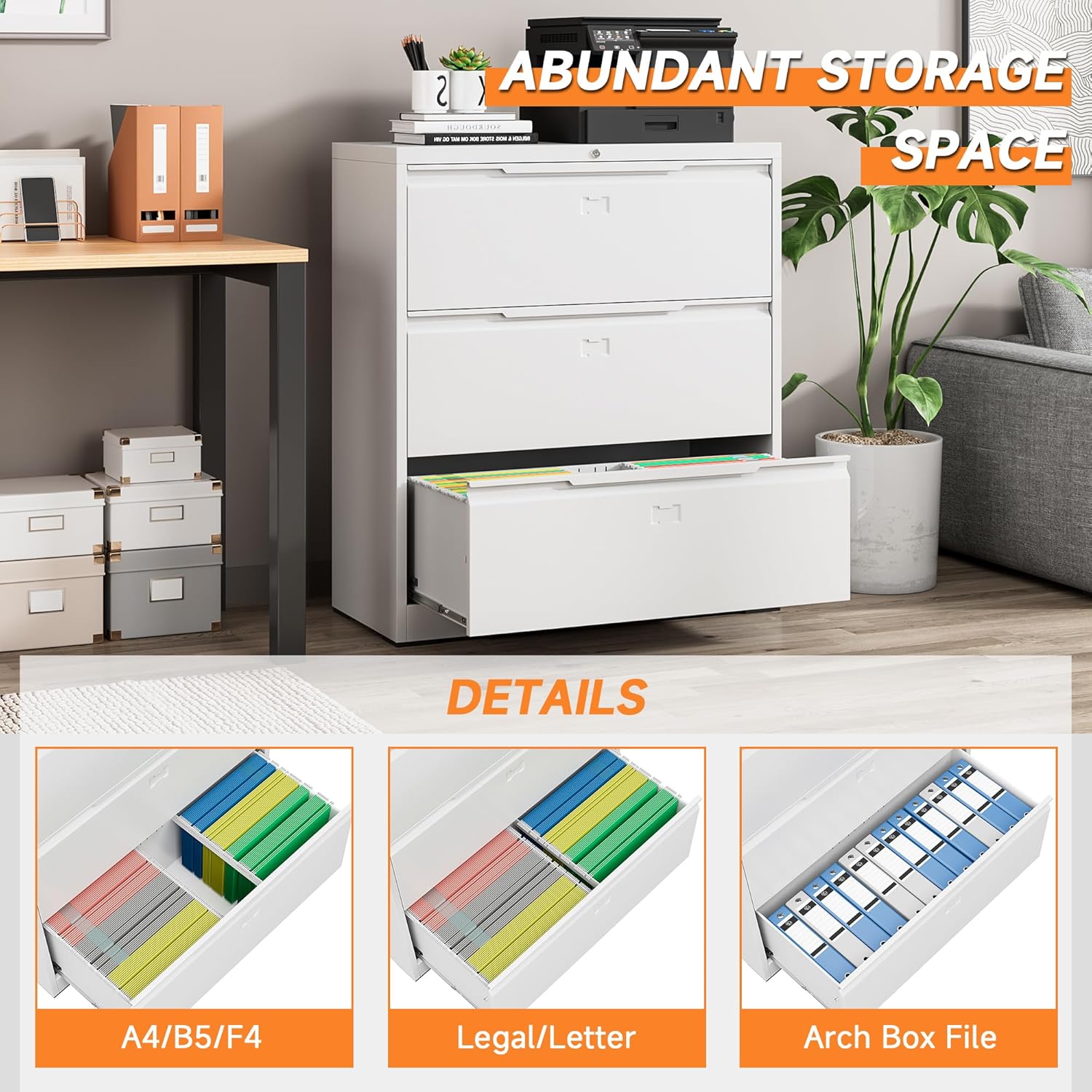 - 【Humanized Design】The ball-bearing full suspension drawers ensure smooth and quiet opening and closing, providing effortless access to your files. This friendly feature enhances convenience and minimizes disruption in the office environment.