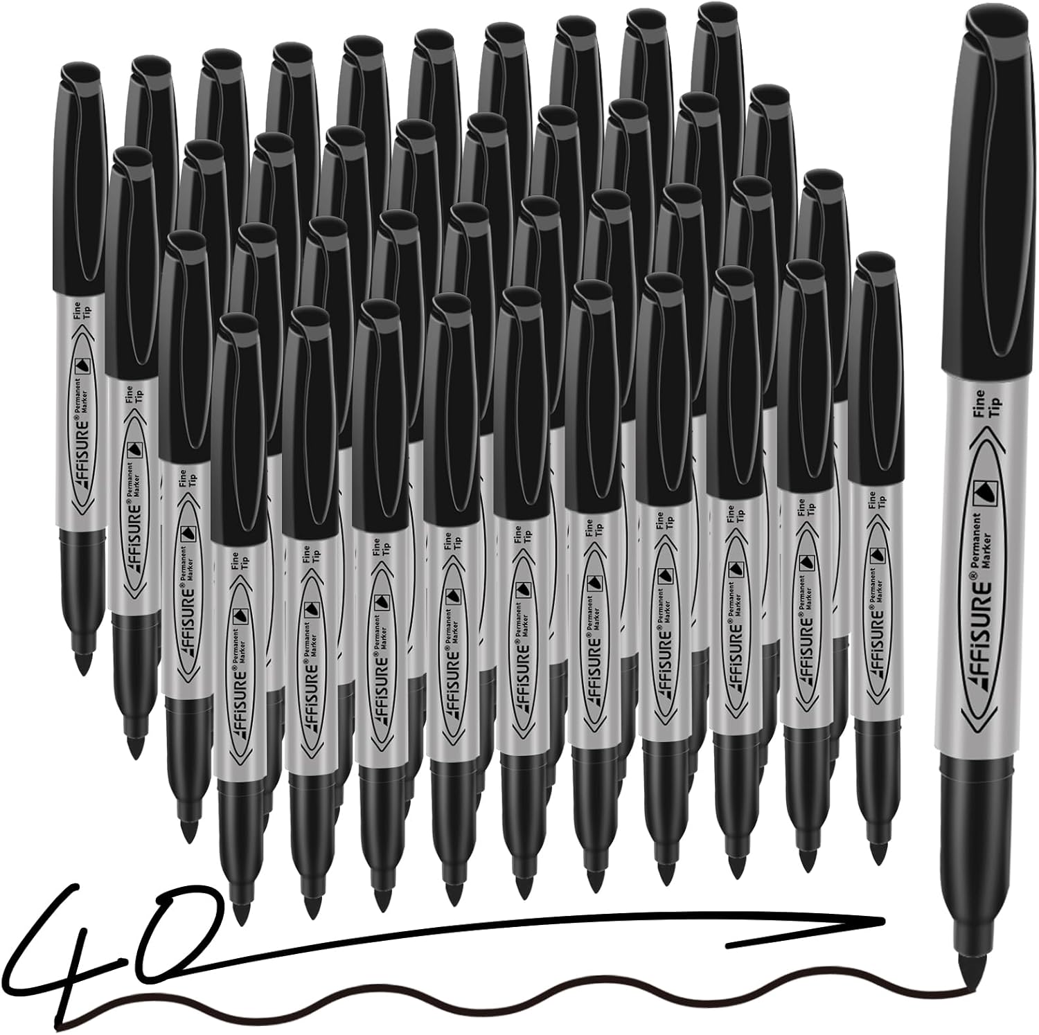 - PERMANENT MARKERS BULK: There are 40 permanent markers in a box, and each permanent marker black has sufficient ink . Permanent markers can be used for a long time, and the pen cover has good sealing performance and plastic surface, them very suitable for coloring、painting、writing、drawing、marking out,which is suitable for use in offices, schools and other places.