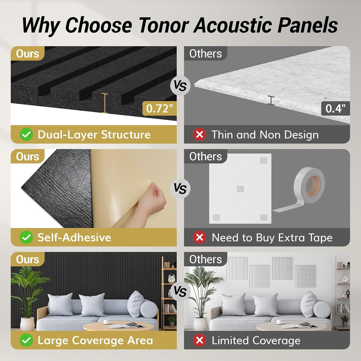 - Dual-Layer Reinforced Structure: With a double-layer thickened absorption material, effectively disperse echo and noise. Each panel measures 47.2 x 23.6 x 0.72 inches, providing a superior experience compared to single-layer panels