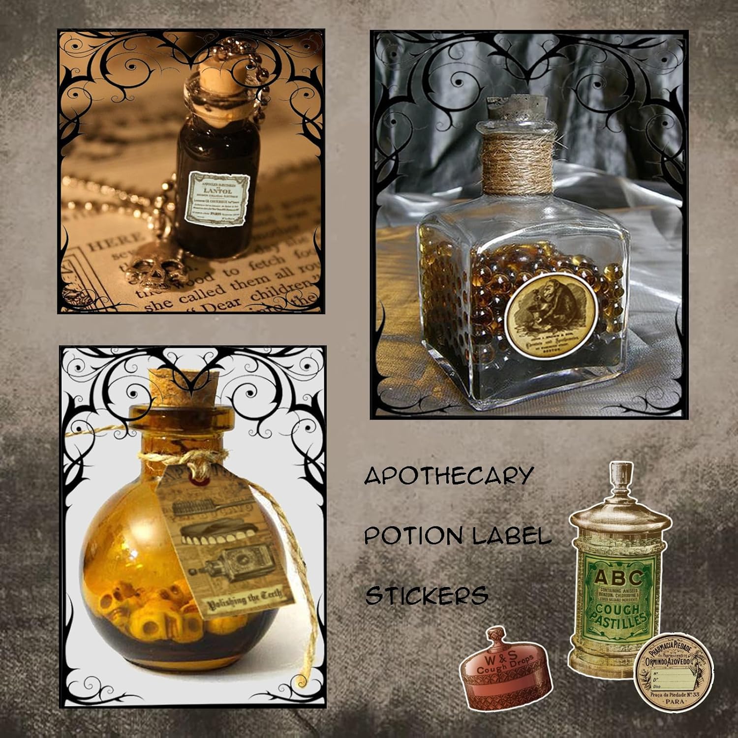 Prstincol 120 Pcs Vintage Apothecary Potion Label Stickers for Journaling, Dark Aesthetic Scrapbook Supplies Ephemera for Junk Journal Bullet Journal DIY Crafts Album Collage
