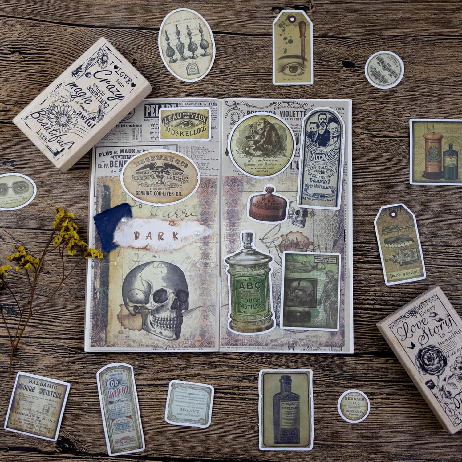 - Diverse Designs: vintage and creepy apothecary potion label theme sticker pack showcasing scary and mysterious elements, such as poison bottles,skeleton,gum and teeth,classical beauty and so on. Perfect for making dark aesthetic scrapbooks and bullet journals.