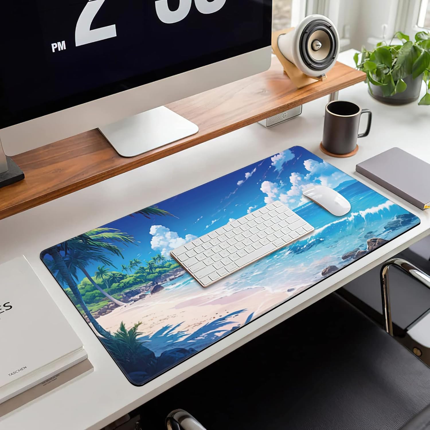 Extended Large Gaming Mouse Pad, Anime Cartoon Large Desk Mat for Desktop XXL, Non-Slip Rubber Base Stitched Edges Long Computer Keyboard Desk Pad Mouse Mat for Gaming Home Office 35.4"X15.7"