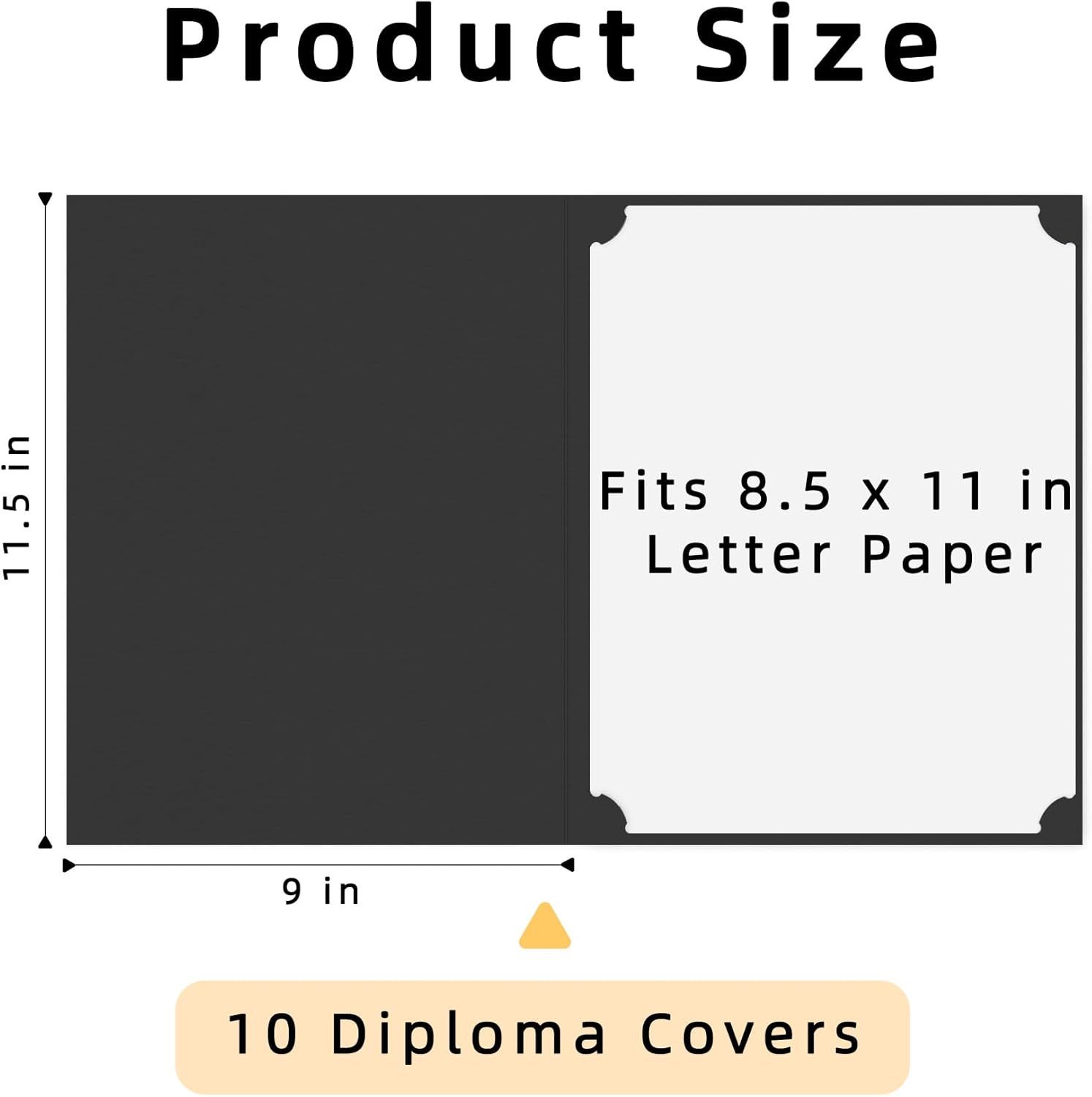HAUTOCO 10 Pcs Certificate Holders, Black Diploma Folders Document Covers with Gold Foil Border for Letter Size 8.5x11 Cardstock, Award, Graduation