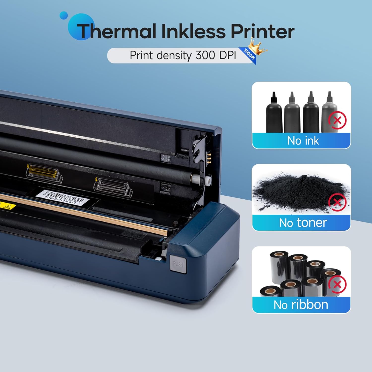 iDPRT MT888 Portable Thermal Printer Wireless for Travel,Support 8.5" X 11" US Letter Compatible with iOS, Android & Laptop,Bluetooth Mobile Inkless Printer with Case, Blue