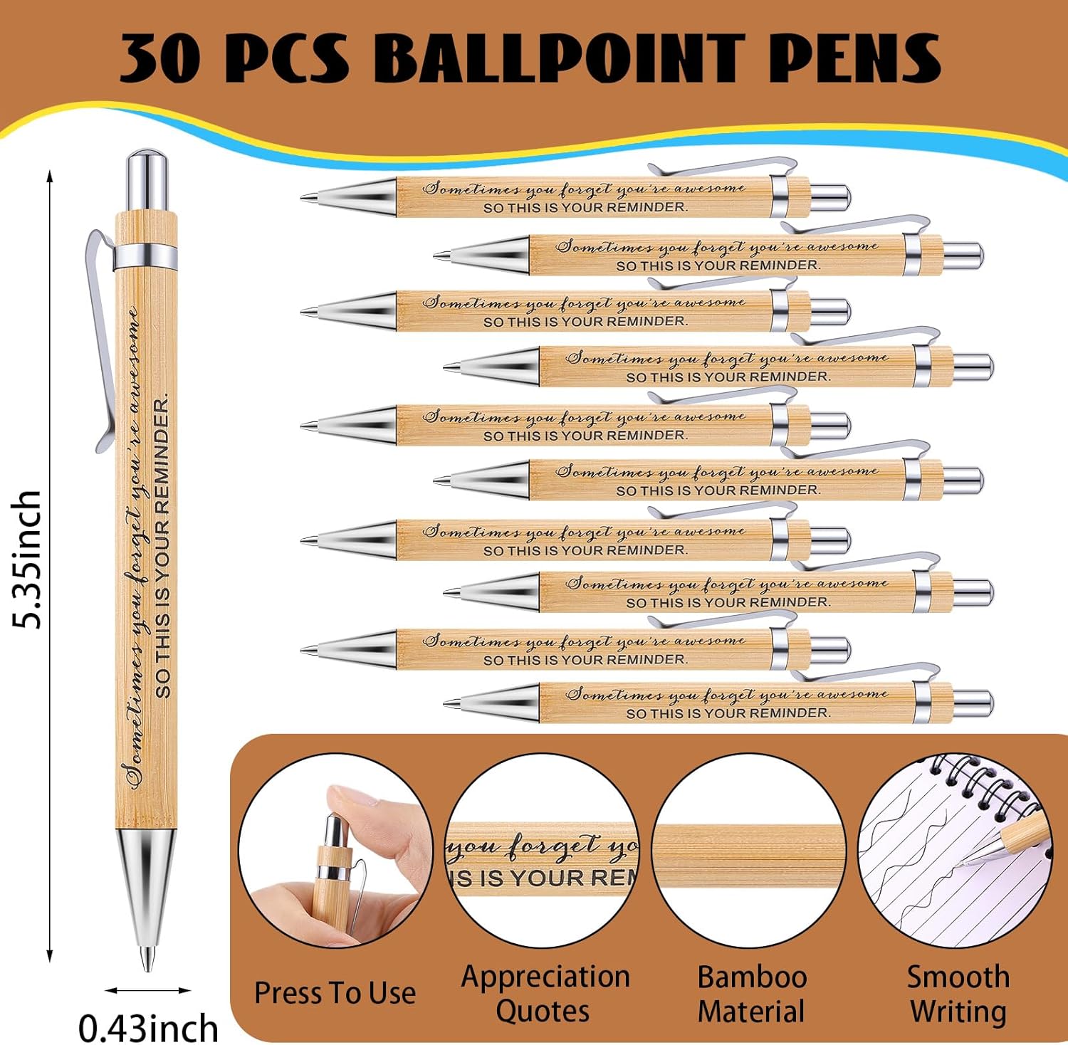 - High Quality: the encouragement notebooks are made with reliable kraft paper, bound with durable coils to keep the pages held together, smooth surface provides a comfortable grip that does not break or fade quickly; the journal also comes with sticky note and sticky pad inside; the ballpoint pen is made of bamboo wood material, providing you with a smooth writing experience