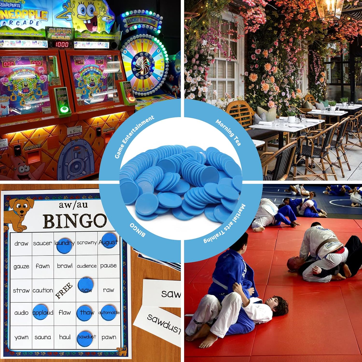 Set of 100 Opaque Plastic Learning Counters Mini Poker Chips Game Tokens with Storage Box (Deepsky Blue, 1.58 Inch)