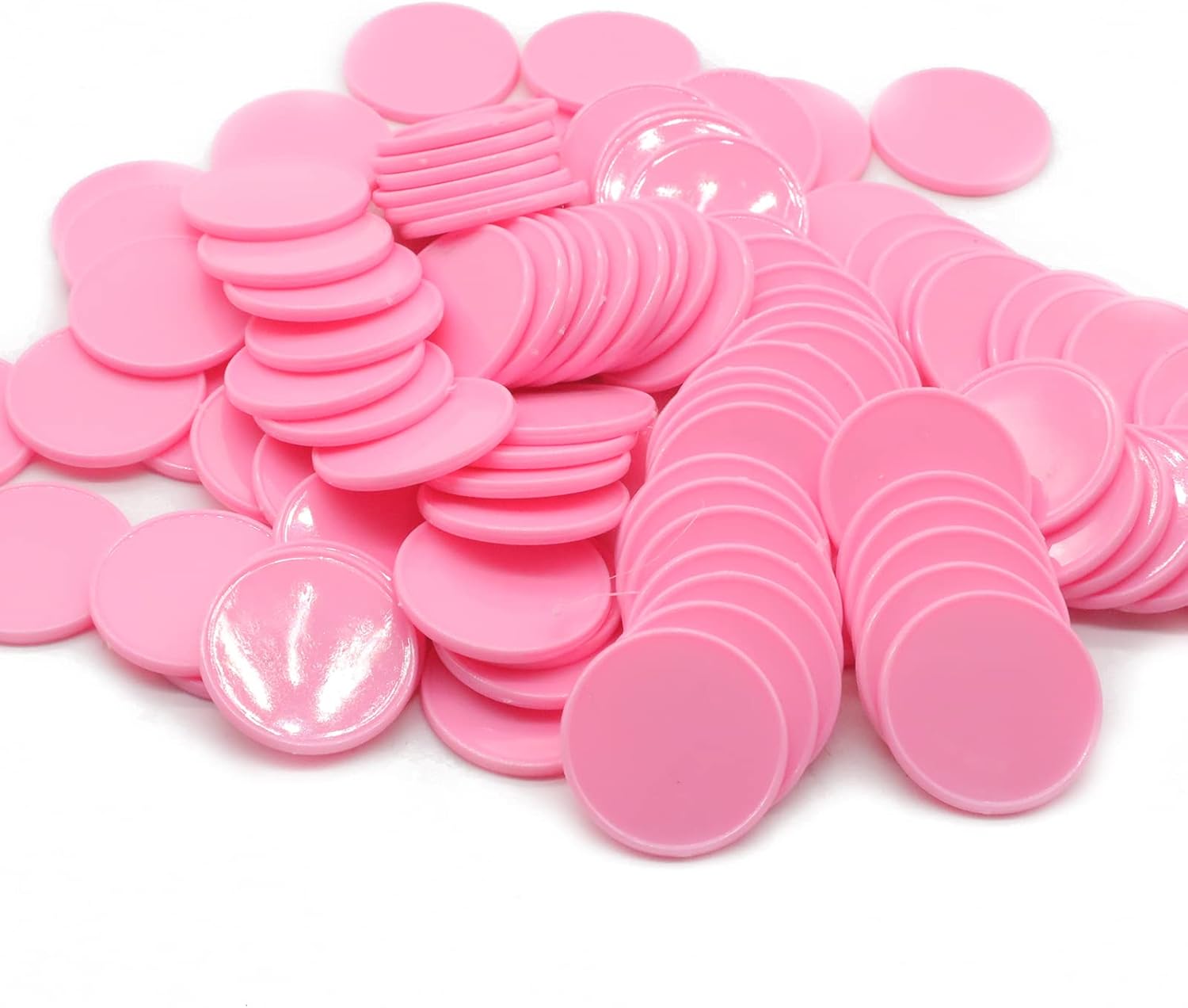 Set of 100 Opaque Plastic Learning Counters Mini Poker Chips Game Tokens with Storage Box (Pink, 1.58 Inch)