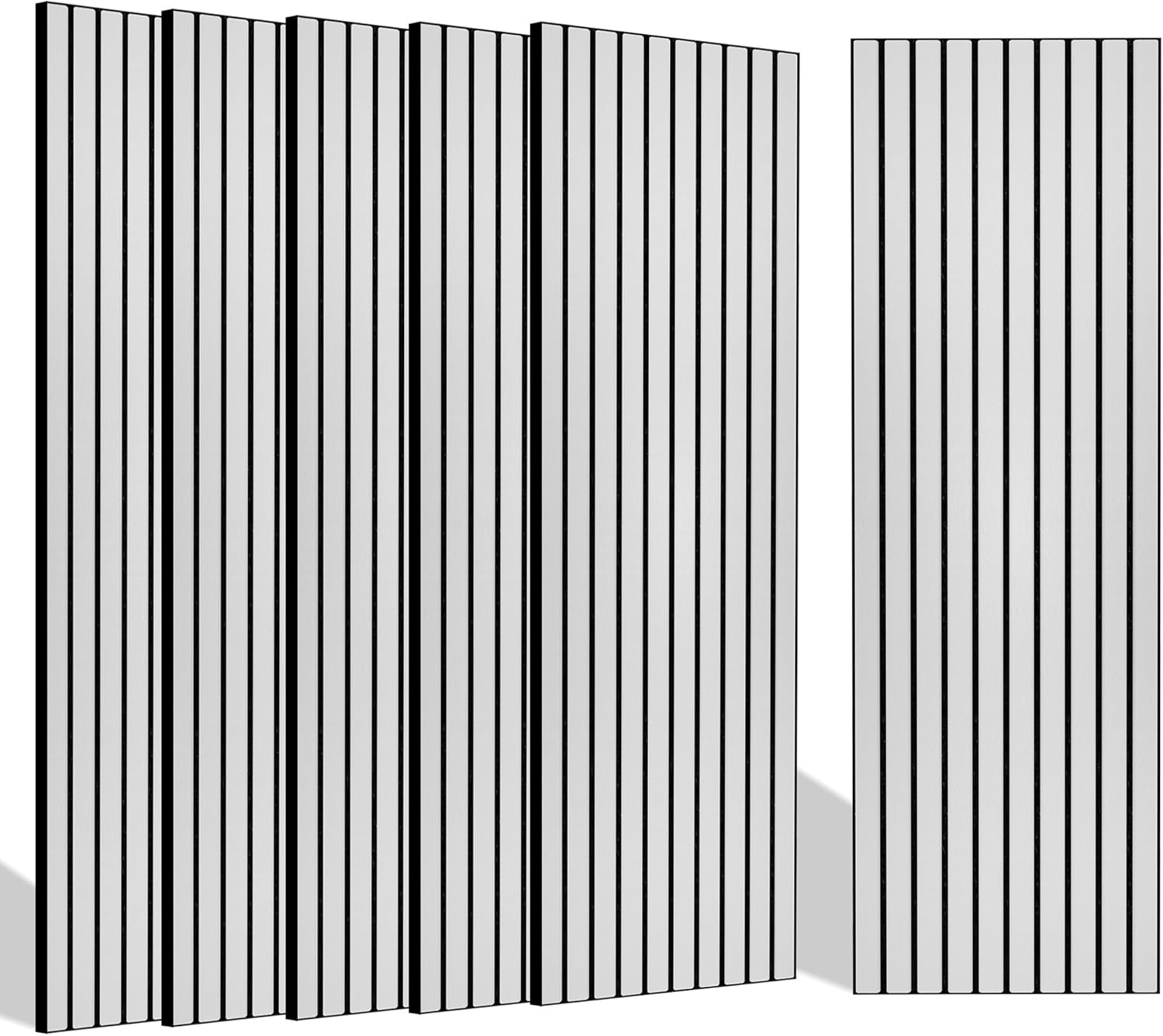 BUBOS 10 Pack Large Acoustic Panels, 48"X 12"X 0.4" Sound Proof Panels for Walls,Decorative Self-Adhesive Acoustical Wall Panels,3D Slat Sound Panels for Home Office Studio (White 01)