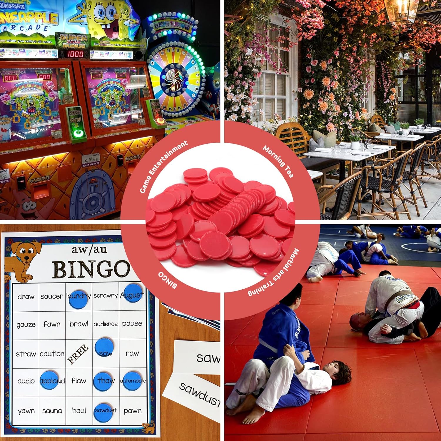 Set of 100 Opaque Plastic Learning Counters Mini Poker Chips Game Tokens with Storage Box (Red, 1.58 Inch)