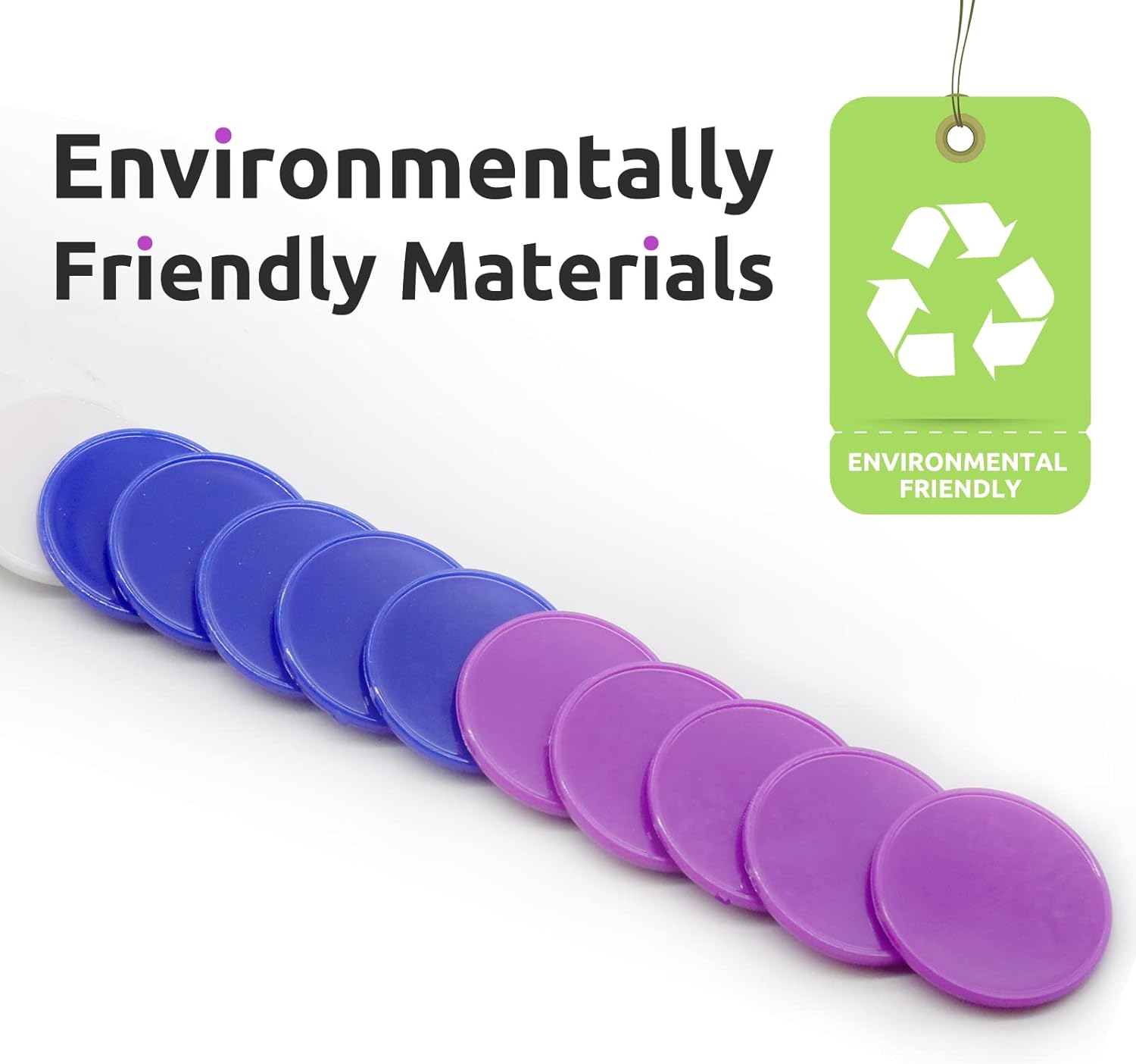 Set of 100 Opaque Plastic Learning Counters Mini Poker Chips Game Tokens with Storage Box (Black+White+Blue+Purple, 1.58 Inch)