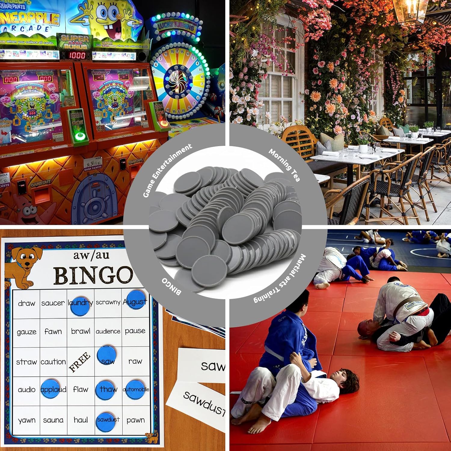 Set of 100 Opaque Plastic Learning Counters Mini Poker Chips Game Tokens with Storage Box (Gray, 1.58 Inch)
