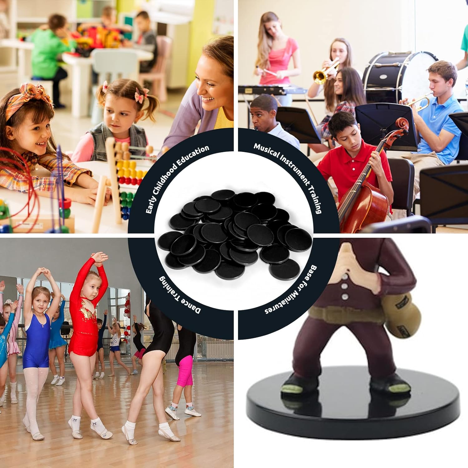 Set of 100 Opaque Plastic Learning Counters Mini Poker Chips Game Tokens with Storage Box (Black, 1.58 Inch)