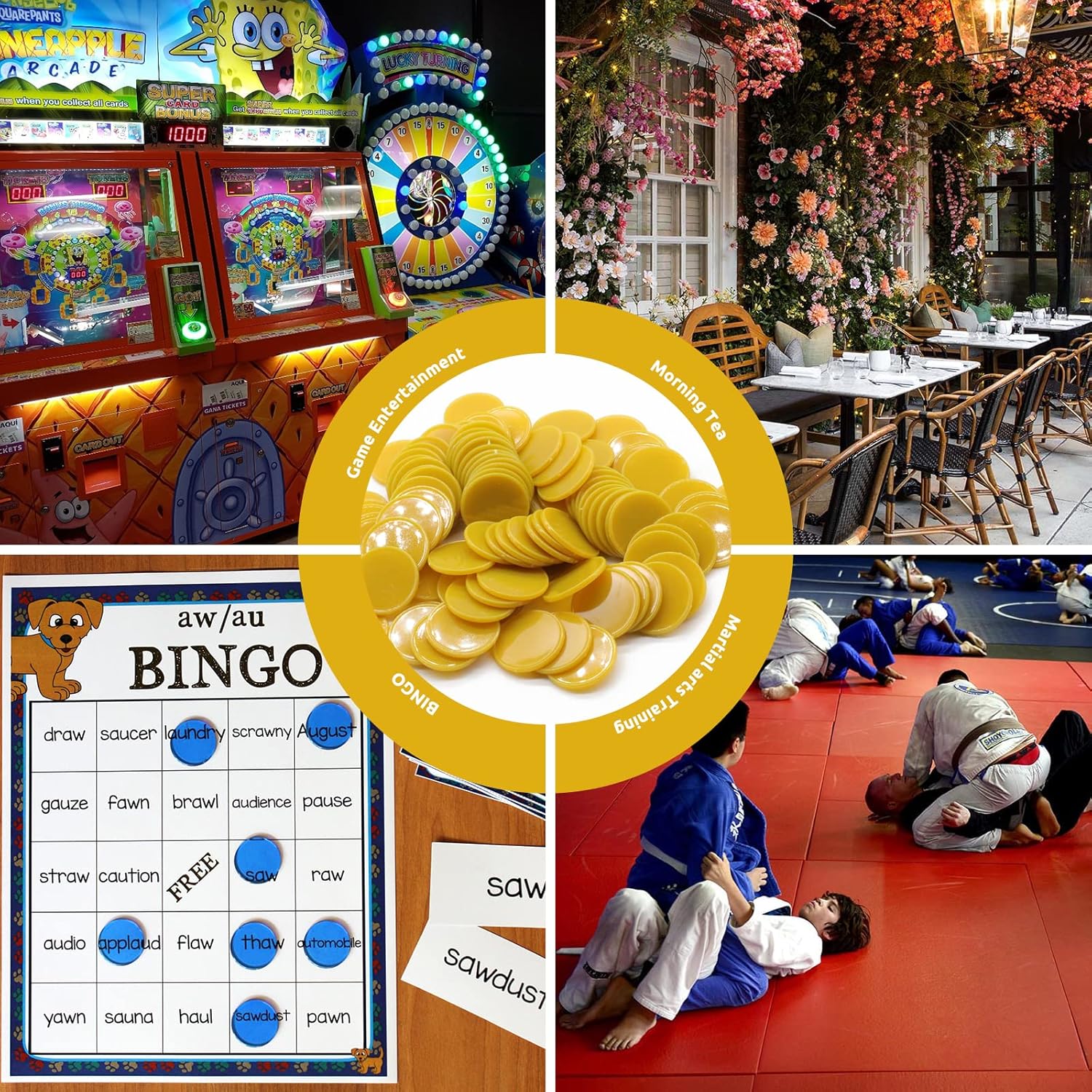 Set of 100 Opaque Plastic Learning Counters Mini Poker Chips Game Tokens with Storage Box (Goldenrod, 1.26 Inch)