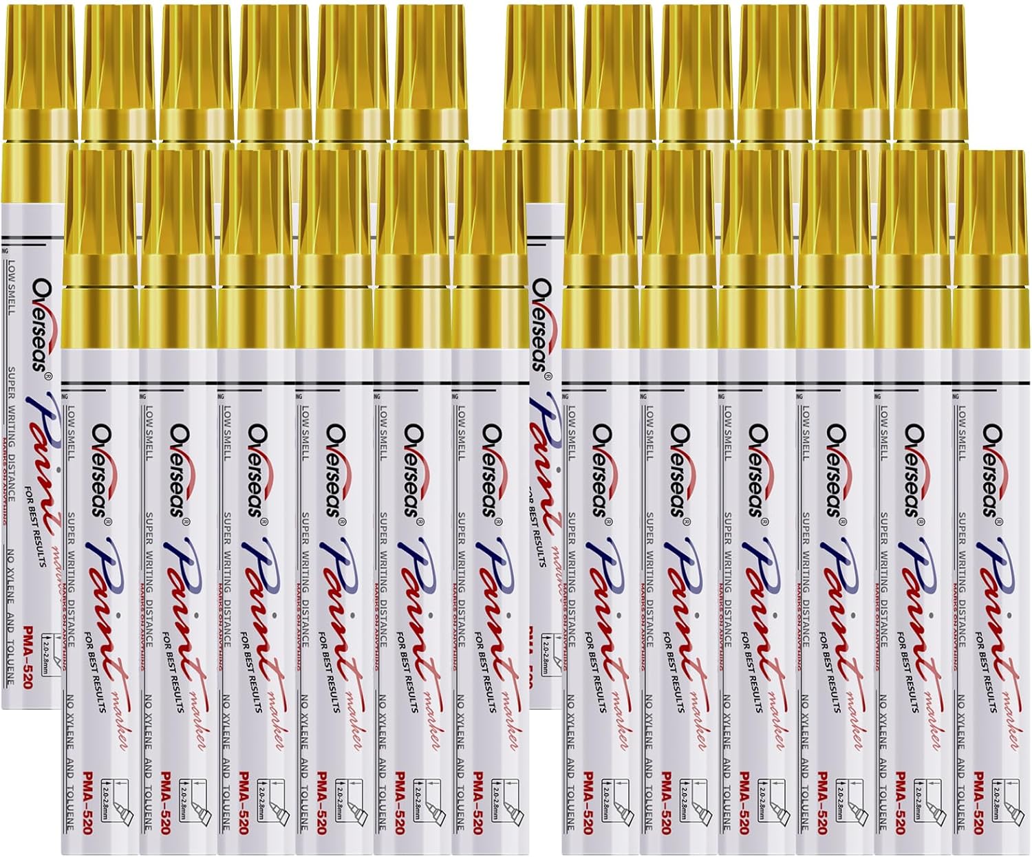 Overseas Gold Paint Pens Permanent Markers 24 Pcs, Oil Based Paint Markers Set, Quick Drying, Waterproof, Medium Tip Marker Pens for Metal, Rock, Wood, Plastic, Canvas, Glass, Stone, Rubber, Paper