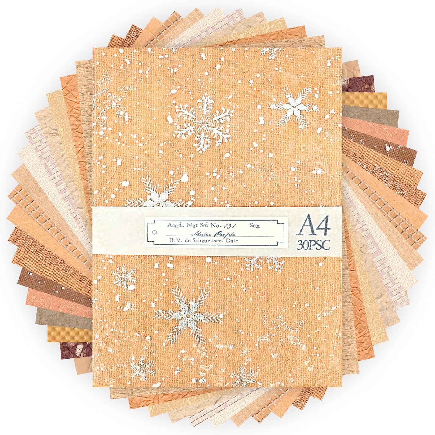 Aromoty 30 sheets A4 size Textured Scrapbook Paper&Mesh Fabric set - Large Handmade Craft Mulberry Special Paper Mix for Scrapbooking Junk Journal Supplies Card Materials Collage, 11.7x8.3 Inches