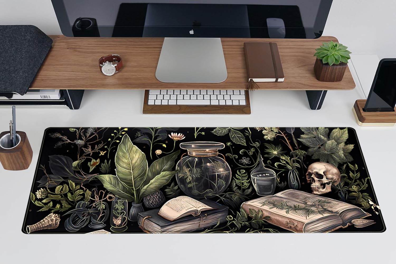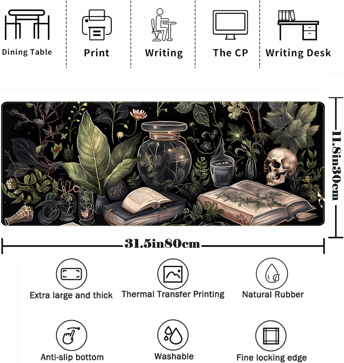 Dark Academia Desk Mat Mouse Pad XL Extended Large Gaming Desk Pad Mousepad, Mystical Green Plant Computer Laptop Keyboard and Mouse Mat, Desktop Protector Mat for Women Girl Office 31.5x11.8 in