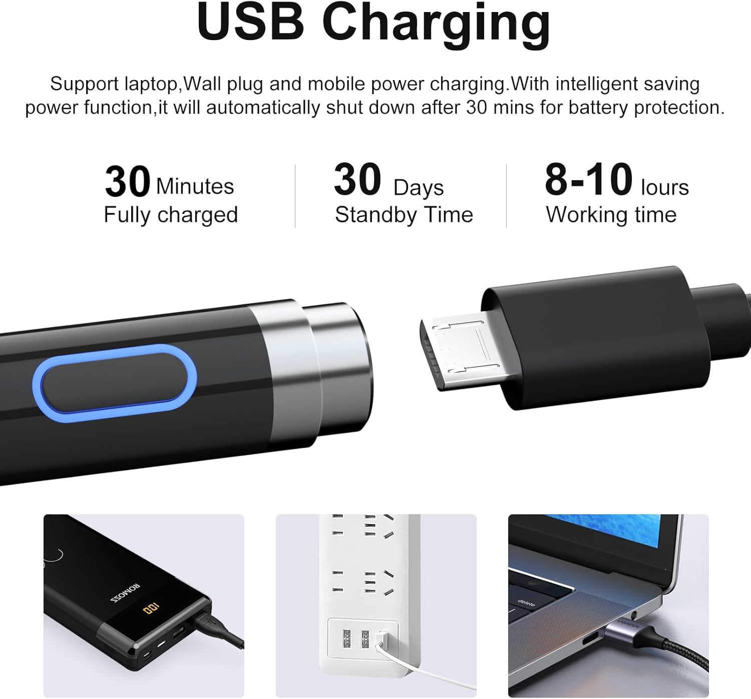 Compatible for iOS&Android Touch Screens Active Stylus Pen,Stylus Pens for Touch Screens,Rechargeable Stylus for i-Pad/Pro/Air/Mini/i-Phone/Cellphone/Samsung/Tablet Drawing&Writing (Black)
