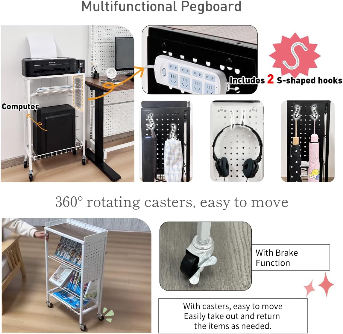 - 【360° Free Rotation for Easy Movement】 Equipped with wheels that can rotate 360 degrees freely. It can be smoothly moved with one hand, making it convenient for room rearrangements and cleaning. The two wheels with brakes make it easy to fix in place when needed.