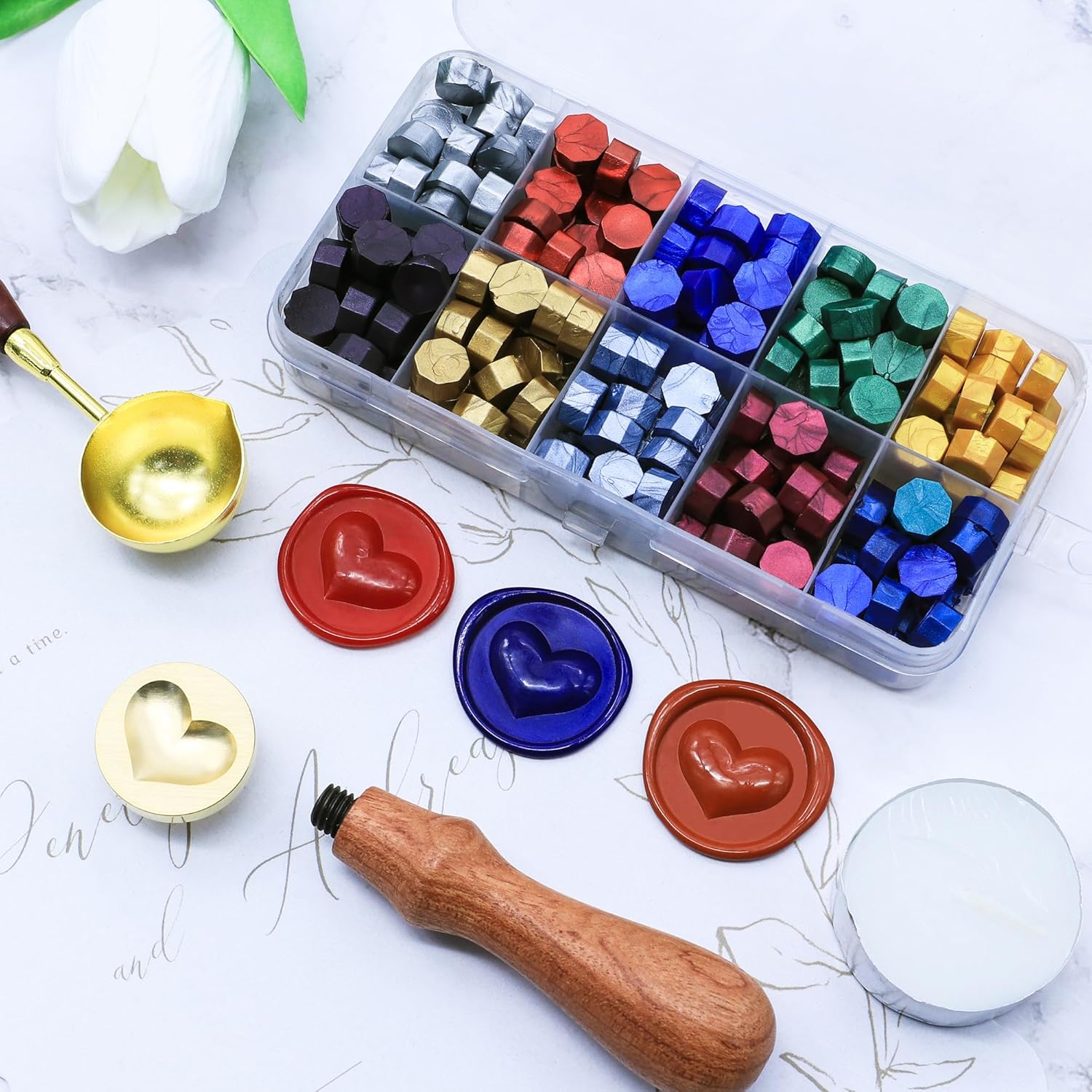 SWANGSA 3D Heart Seal Stamp Kit With 200pcs Wax Beads, Great for Embellishment of Invitations, Wine Packages, Gift Ideas