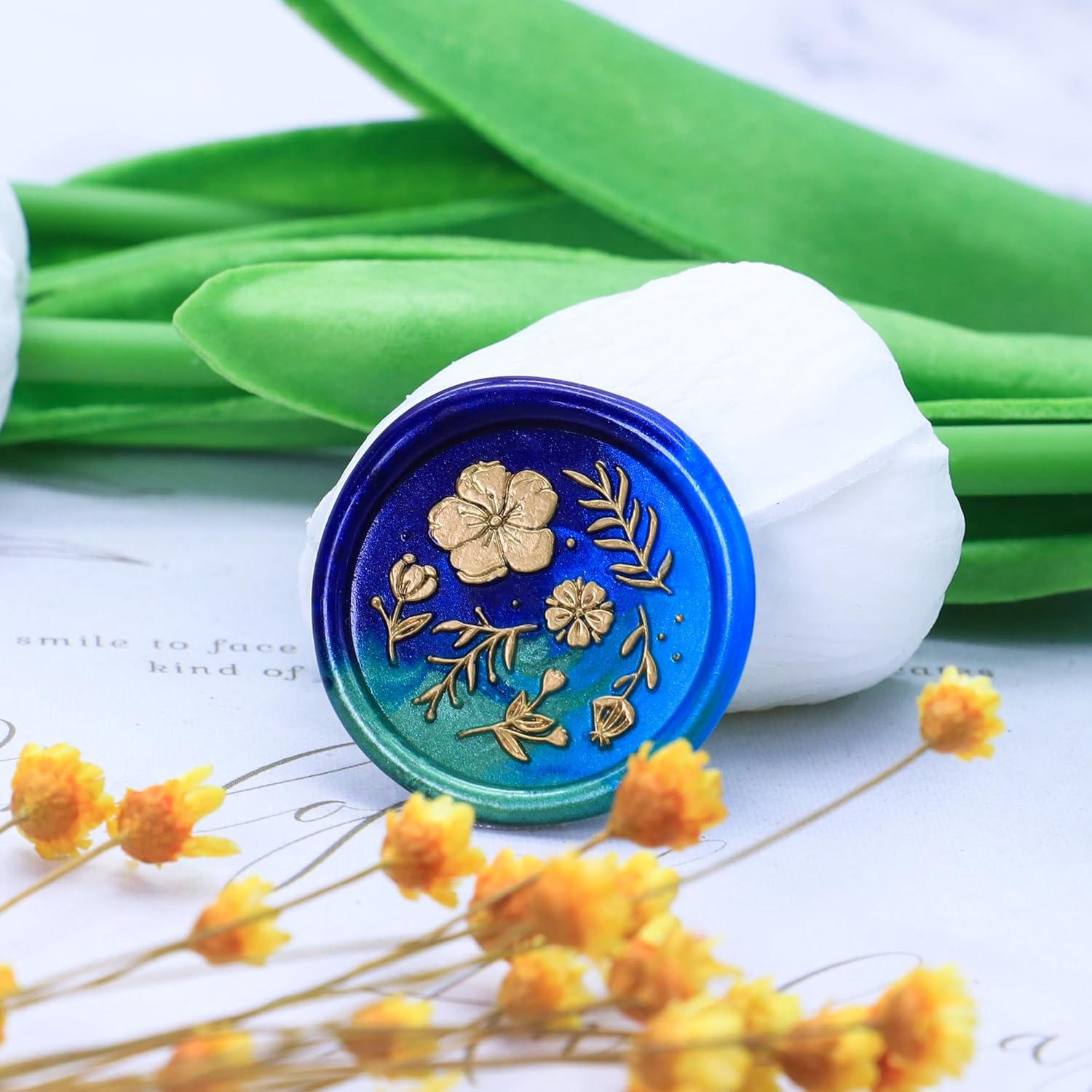 - Floral Wax Seal Stamp Kit: Seal Head Diameter: 25mm/0.98''; Total Lenght of The Stamp: 90mm/3.54''. Packing Includes: 1 x Floral wax seal stamp + 200pcs wax seal beads (10 colors) + 1 x wax seal melting spoon + 1 x candle + 1 wax seal pen.