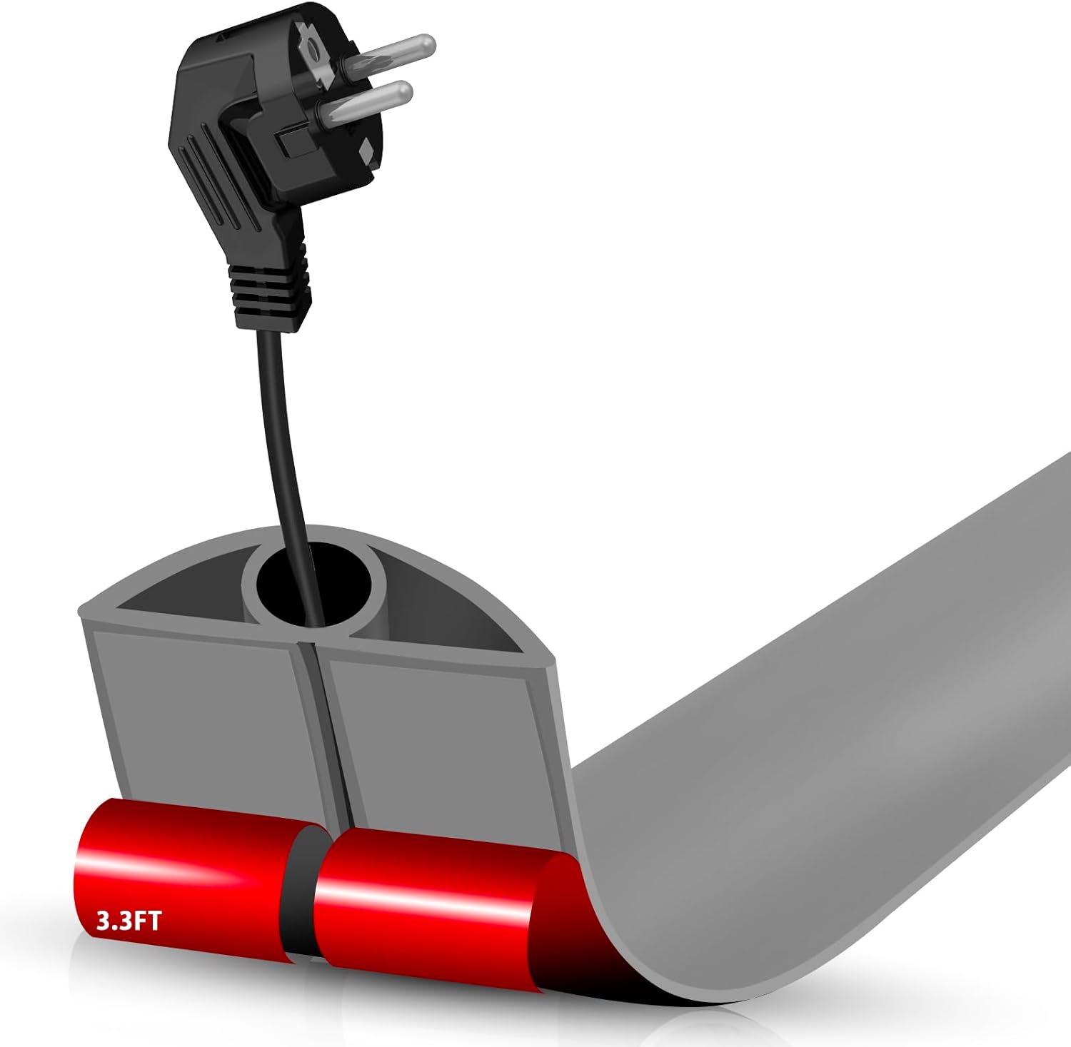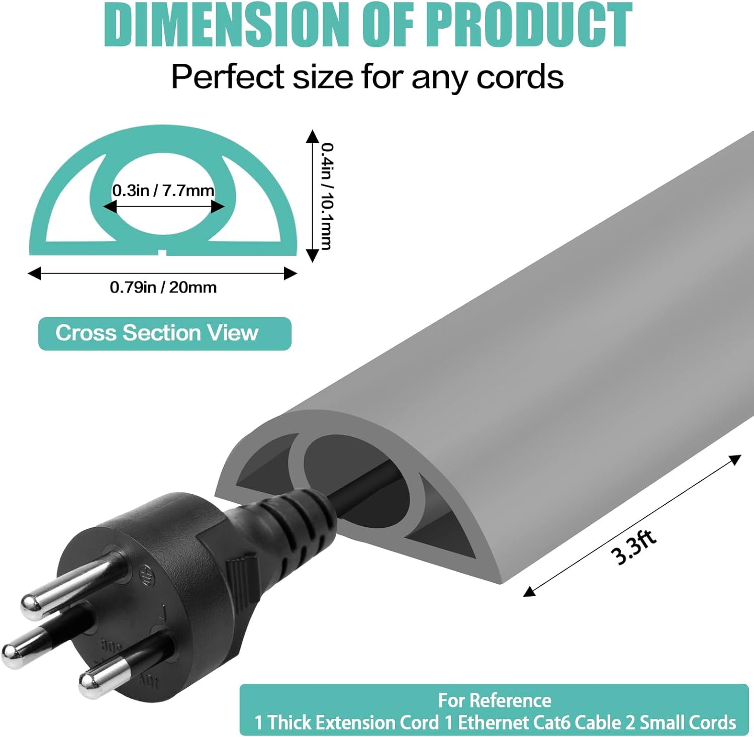 Floor Cord Cover Self Adhesive Cord Hider,3.3FT Cable Management, Extension Strip Protector for Wires, Prevent Cable Trips for Offices, Gyms, Exhibitions Cavity:0.3"(W) x 0.28"(H) Gray