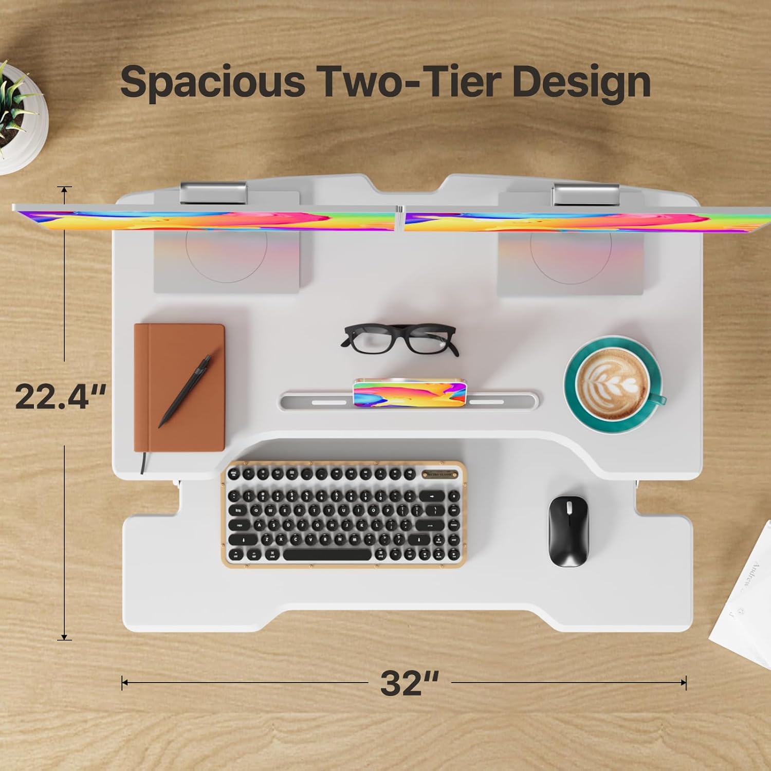- Ergonomic Design: Desktop standing desk allows you to find healthy balance between sitting or standing throughout the day, the streamlined edge design is beneficial to relieve wrist pain, reduce stress and improve productivity