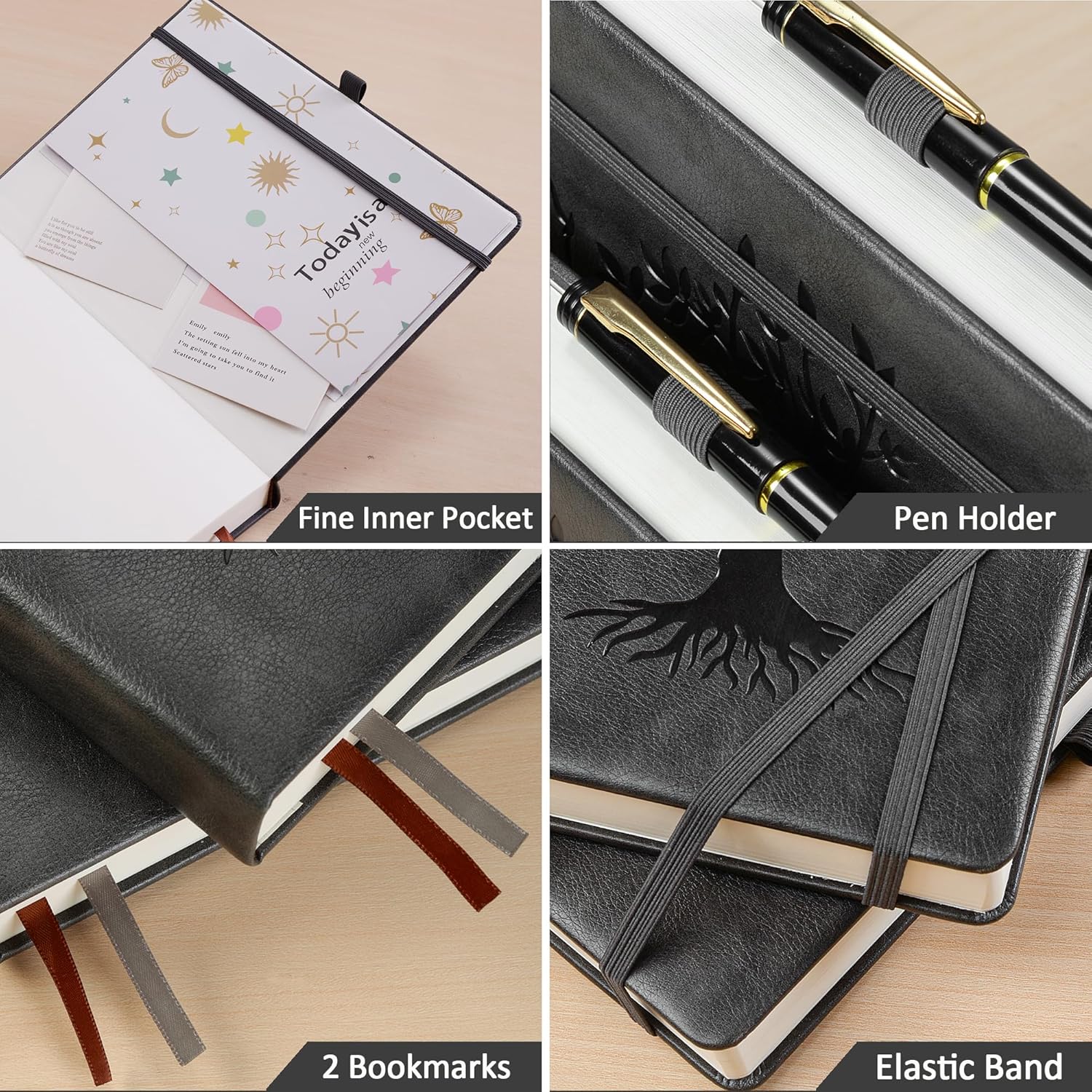 ZXHQ A5 Bullet Dotted Journal Notebook - 150gsm Thick Paper, 256 Pages, Dot Grid Hardcover, Tree of Life Design, Fine Inner Pocket - 5.9" × 8.5" Dark Grey