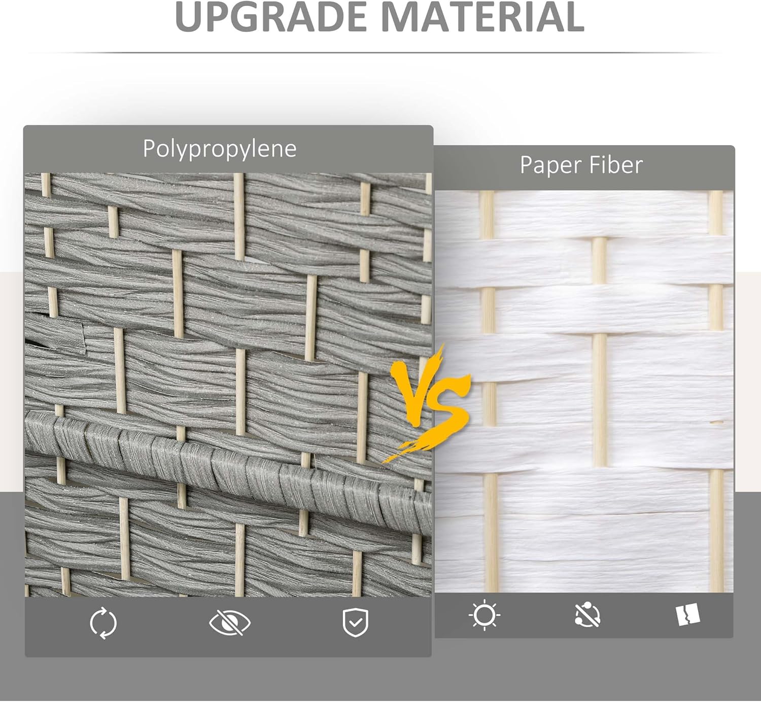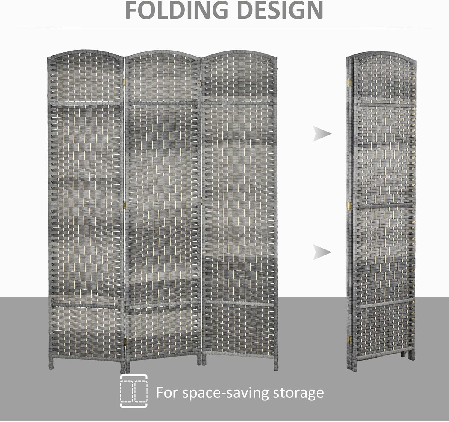 HOMCOM 3 Panel Room Divider, 6' Tall Folding Privacy Screen, Hand-Woven Freestanding Wall Partition for Home Office, Bedroom, Mixed Gray